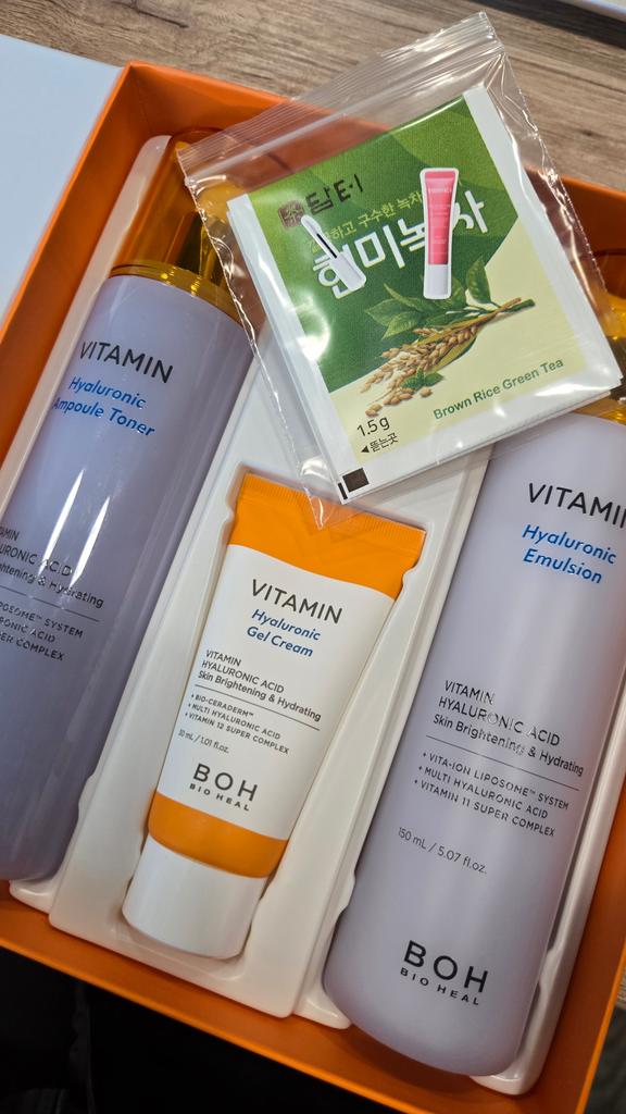 This beauty set helps with brightening the skin, strengthening the moisture barrier, and improving the skin's elasticity.