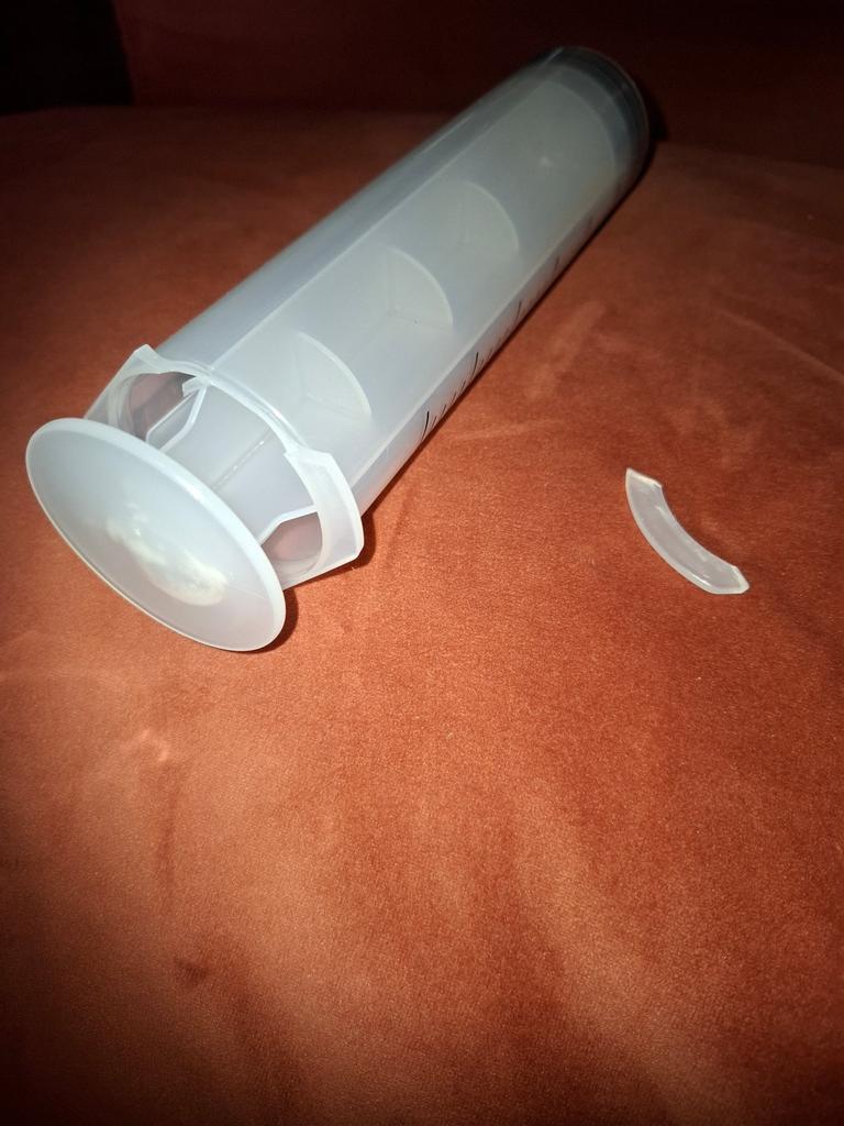 The edge of the syringe is broken off. We will restore it.
