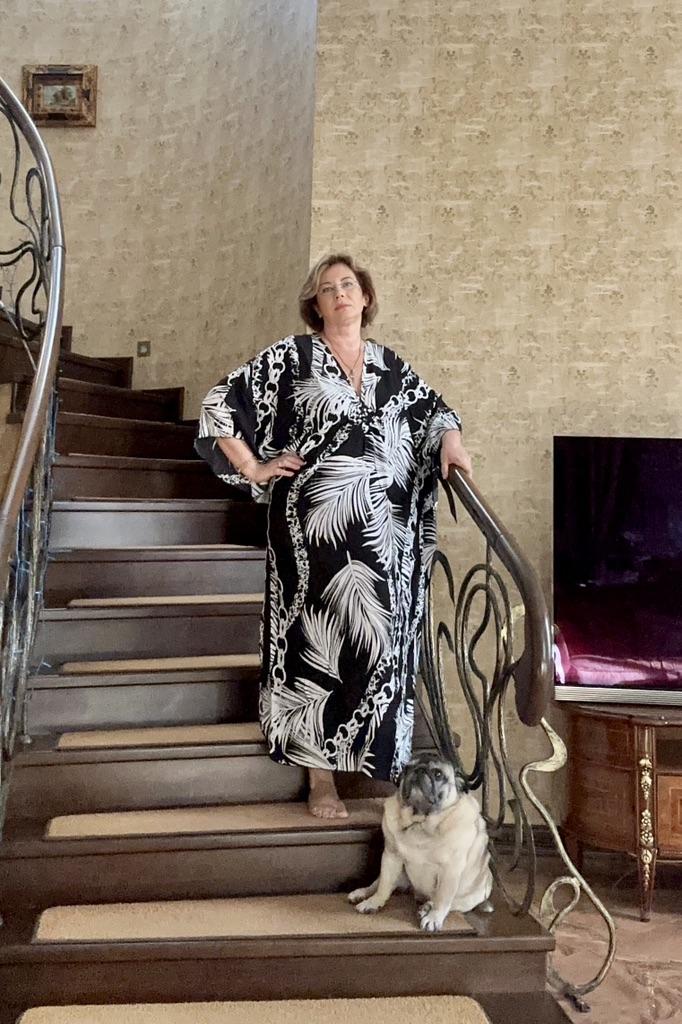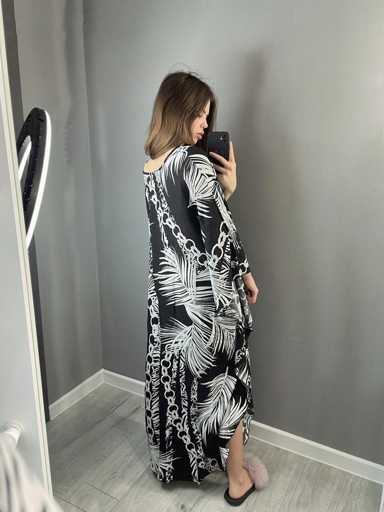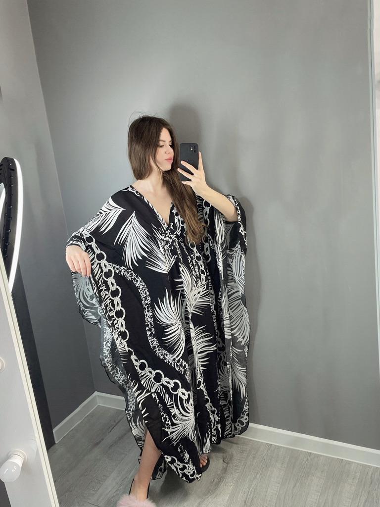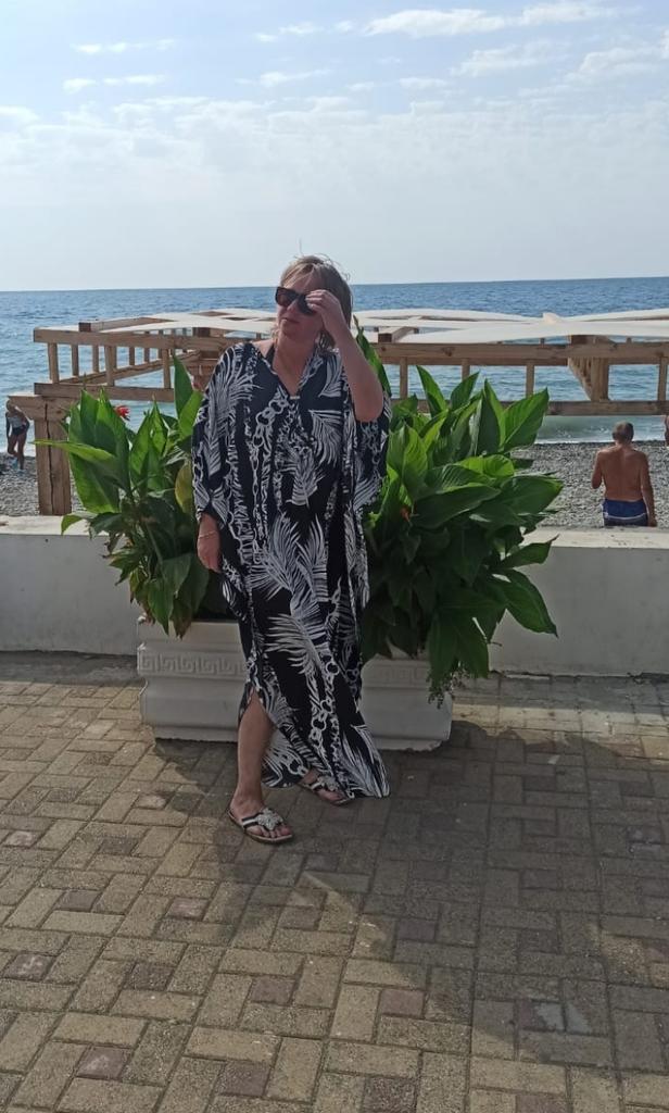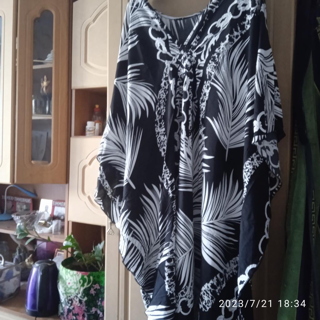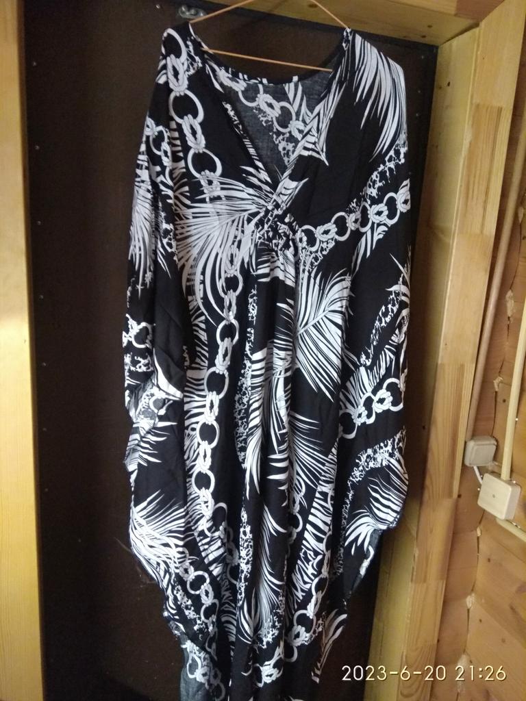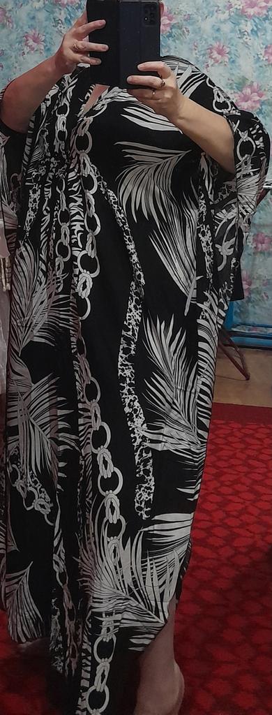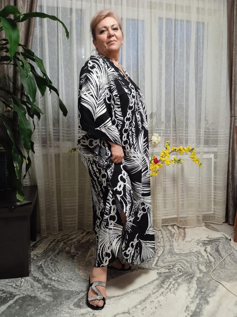 The dress is super. For tall ladies. Wide, so it is suitable for women of different builds. Very good for relaxing. Cotton fabric. I recommend!