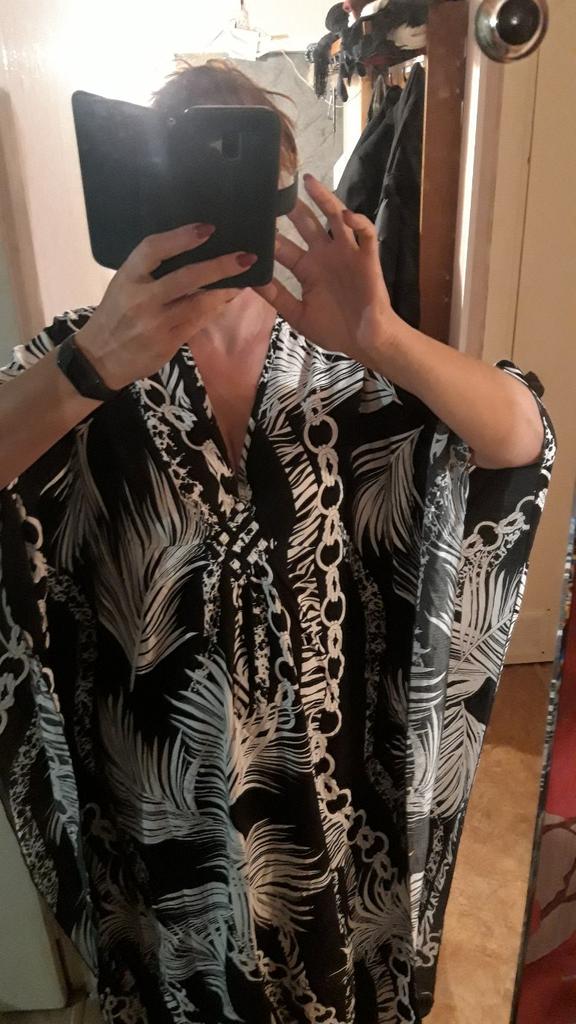 The tunic is lovely, without defects, just beautiful at sea. The tunic is lovely, I wore it on the sea in Dubai, very, very comfortable, comfortable, thank you. ,