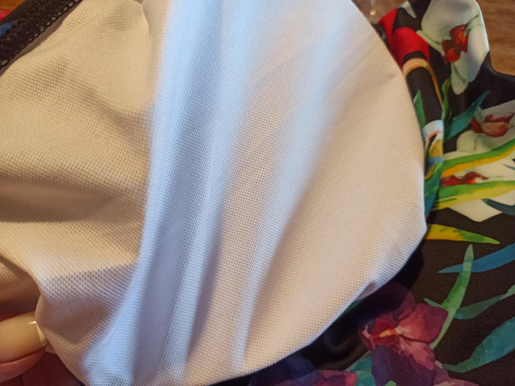 Not the best quality (very thin material, almost transparent. Doesn’t hold its shape. The foam inside the cup is not fixed in any way, it flops back and forth. It’s better to pay extra and buy another swimsuit here at the juma, but of excellent quality. (That’s what I did)