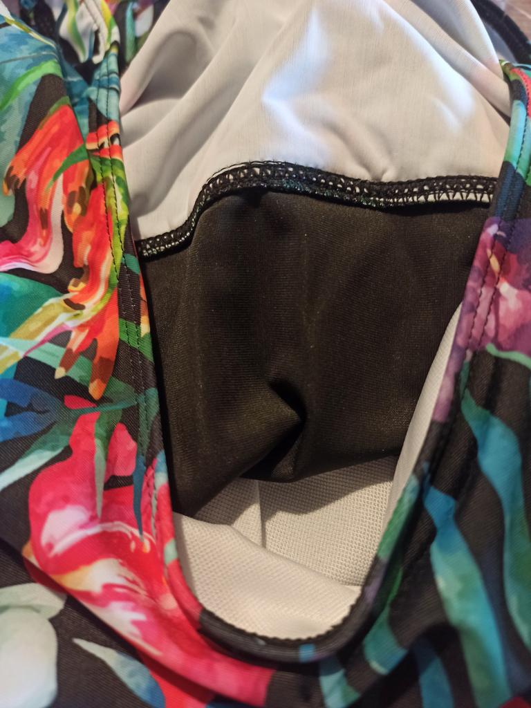 The swimsuit is cool, although it is a bit big for me, I recommend it to full-figured women, but it doesn’t support the breasts, there are some pads in the cups, some are not.