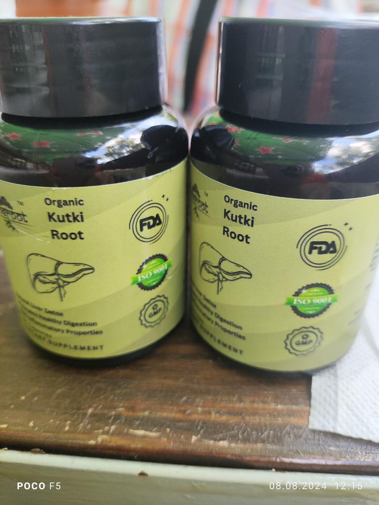 ❤️Kutki Root Extract Capsules by Heroot Organics ✔️Product with 100% vegetarian and vegan formula of natural origin, created by Ayurveda experts. ✔️Kutki is an effective and efficient dietary supplement that helps maintain normal liver function ✔️Herbal mixture: * Recommended for liver problems * Helps maintain normal liver function * Helps maintain normal bile production function * Recommended for diabetics * Helps maintain normal body weight ✔️The product was well packed 💕 ✈️ The parcel arrived in 10 days to Moldova - Chisinau.