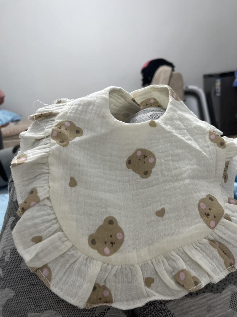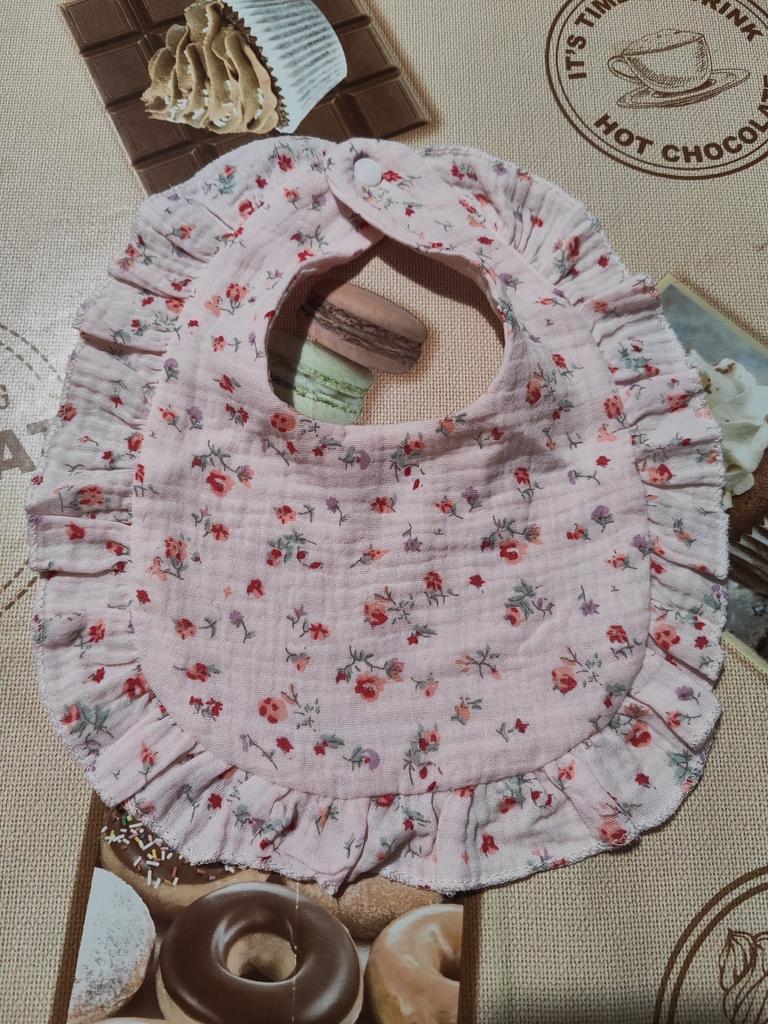 Nice bib, good quality. Soft, fastens with a button. Satisfied)