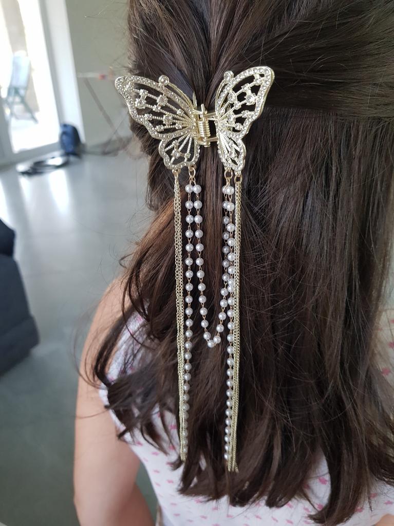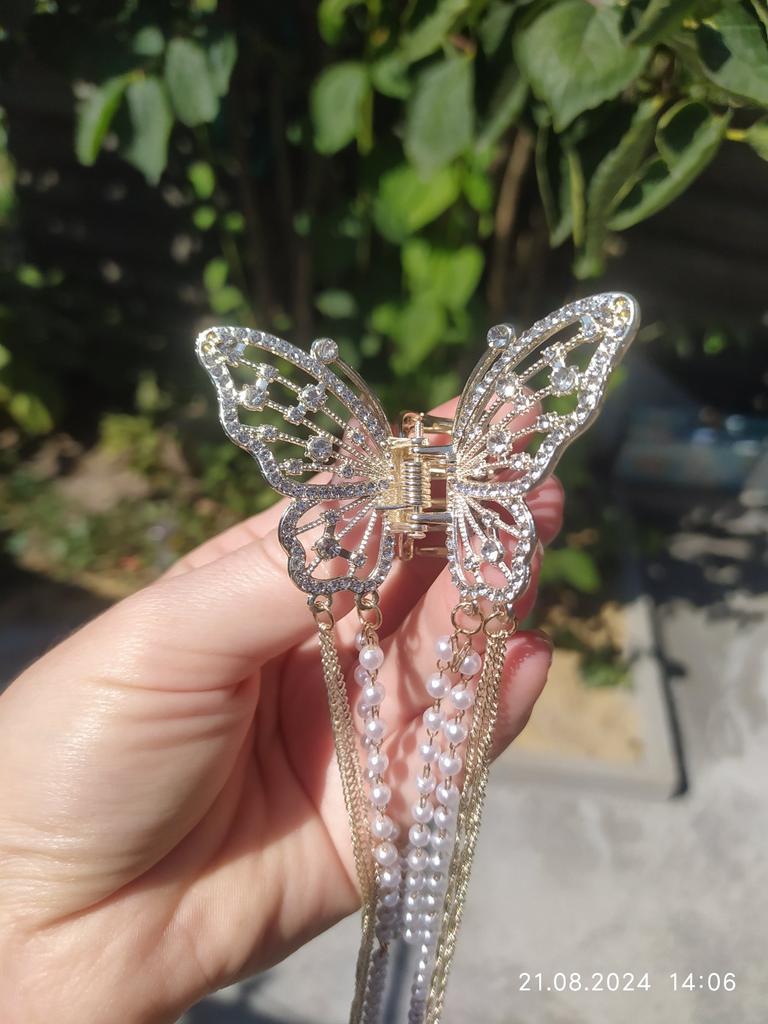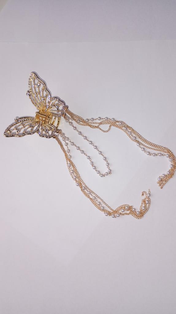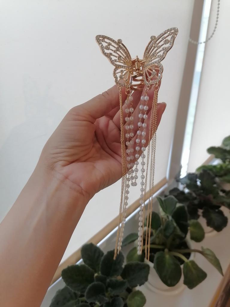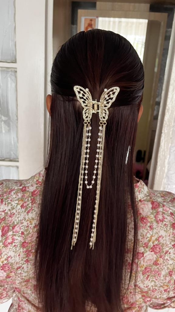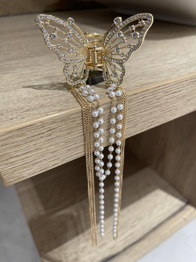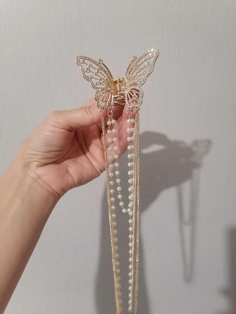 Korean Butterfly Pearl Tassel Hair Clip Women Rhinestone Tassel Clip Crystal Simple Hair Claw Clip Shark Crab Clips Girls Hairpin Hair Accessories