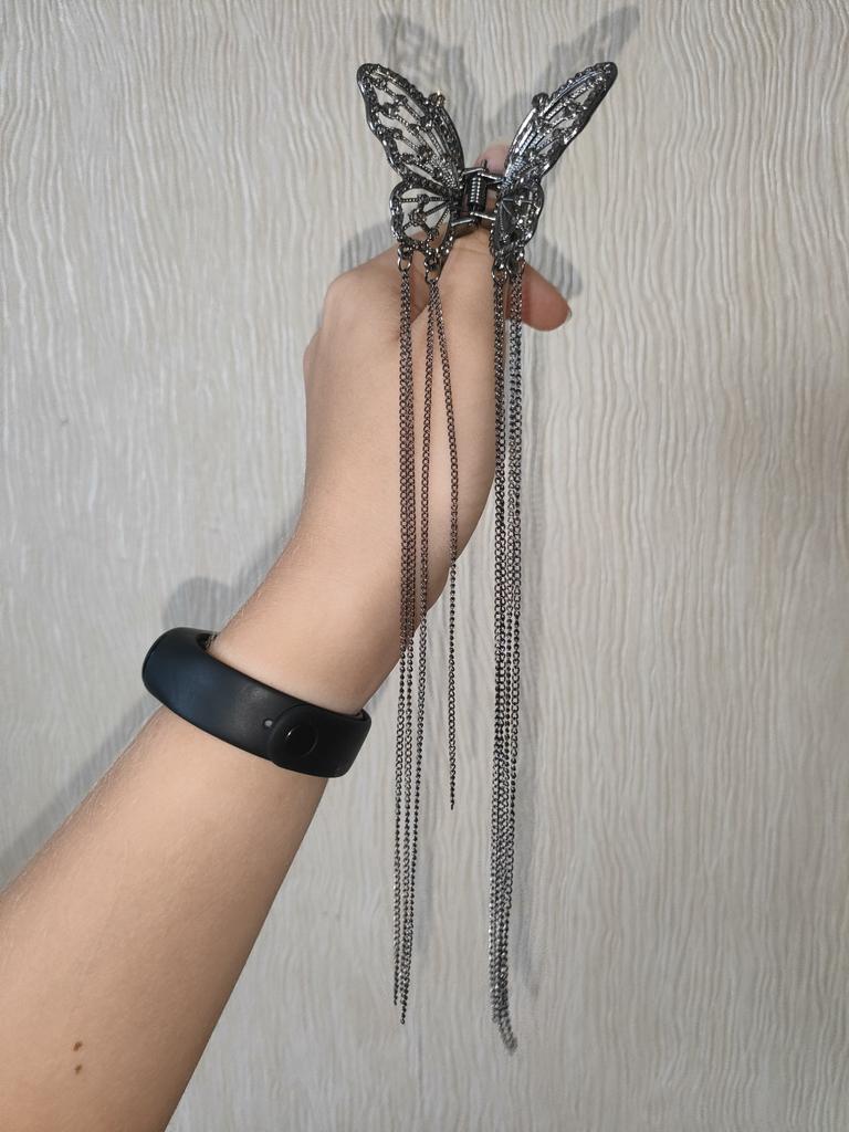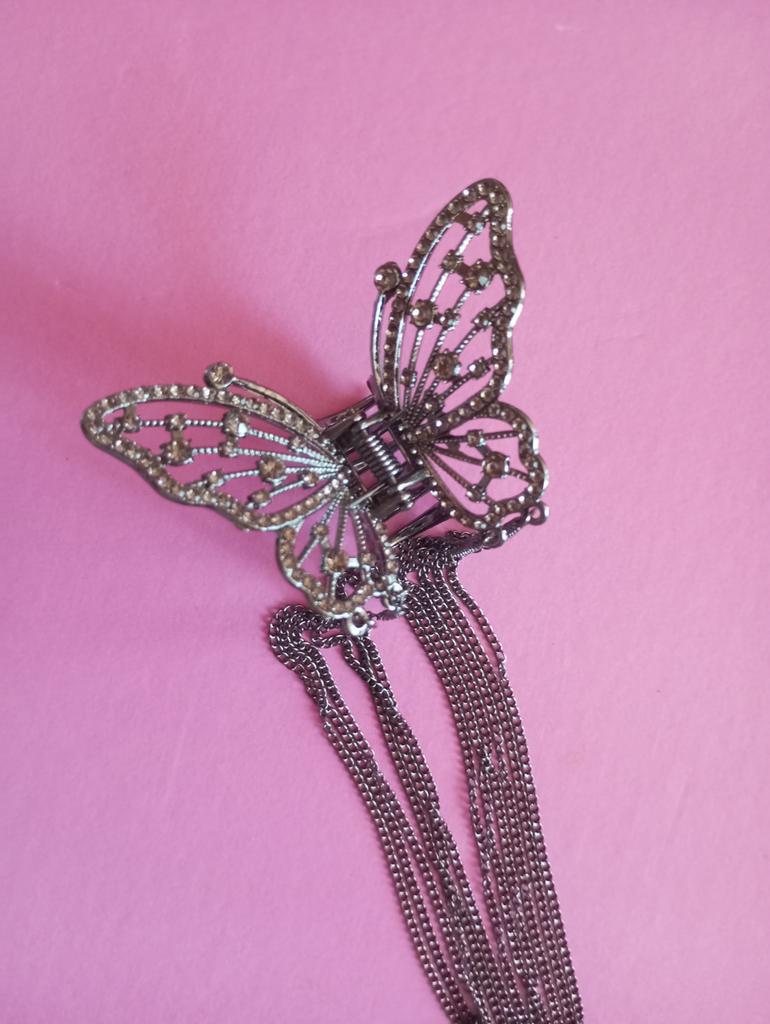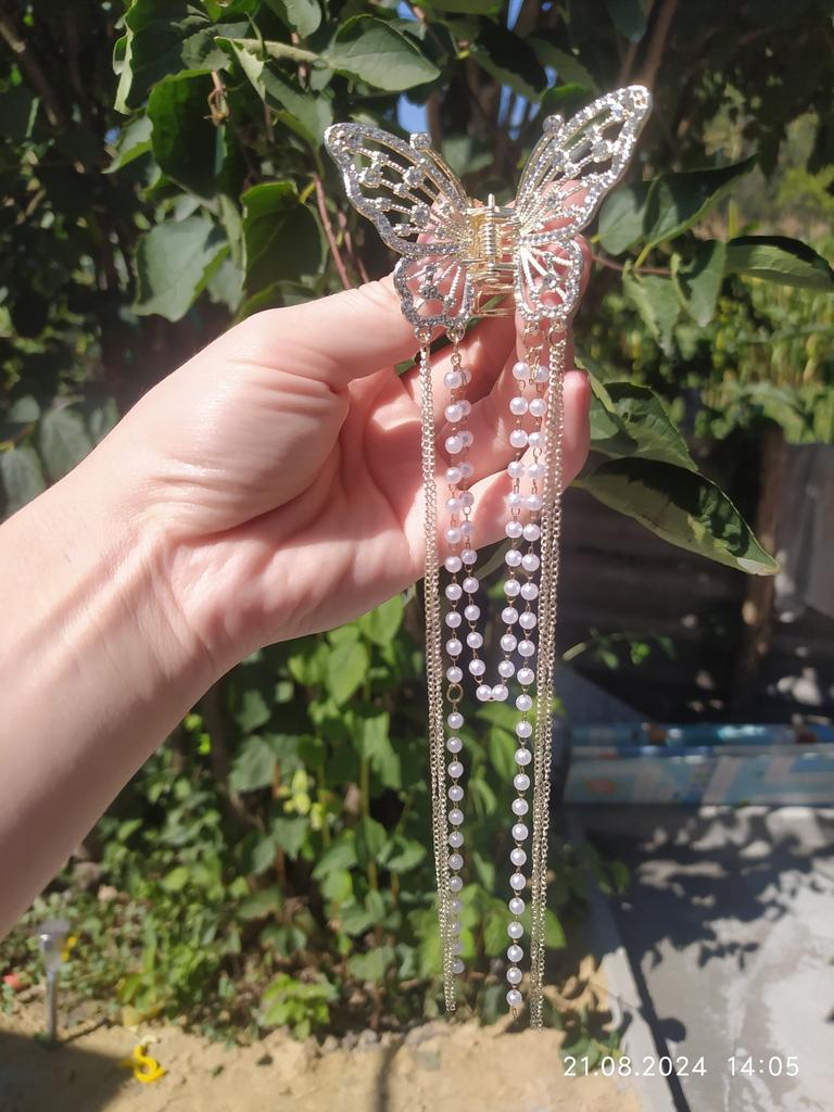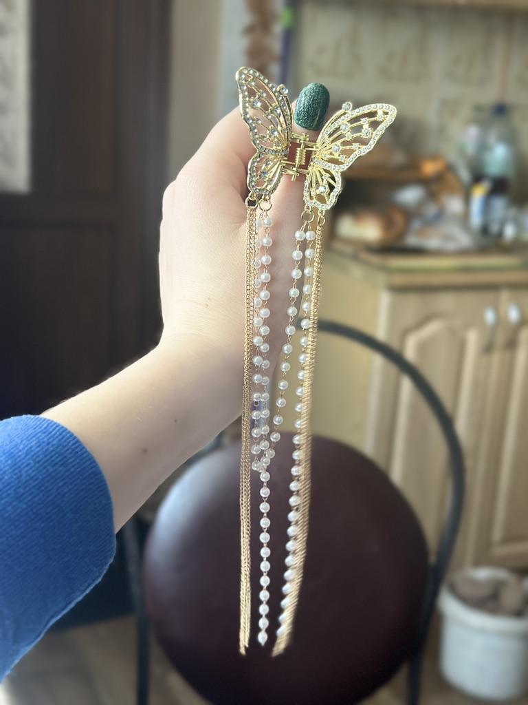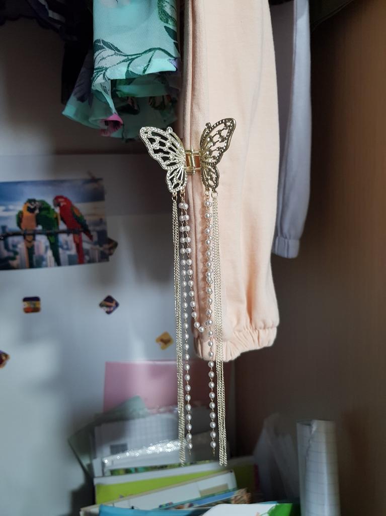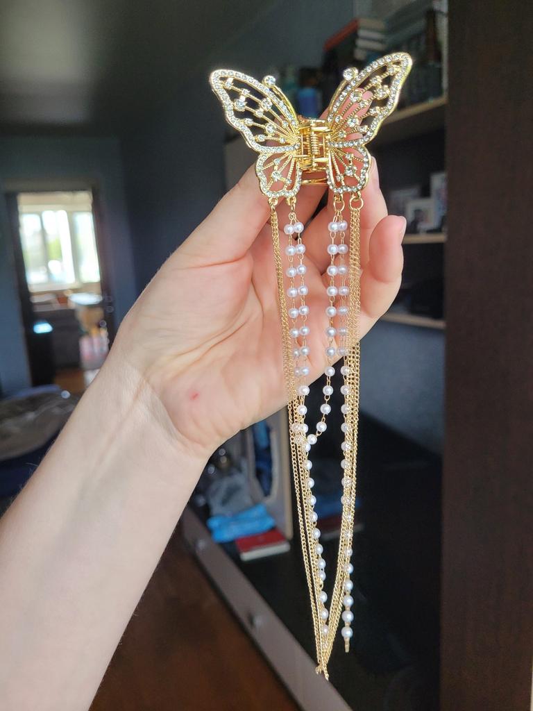 Korean Butterfly Pearl Tassel Hair Clip Women Rhinestone Tassel Clip Crystal Simple Hair Claw Clip Shark Crab Clips Girls Hairpin Hair Accessories