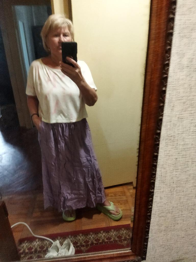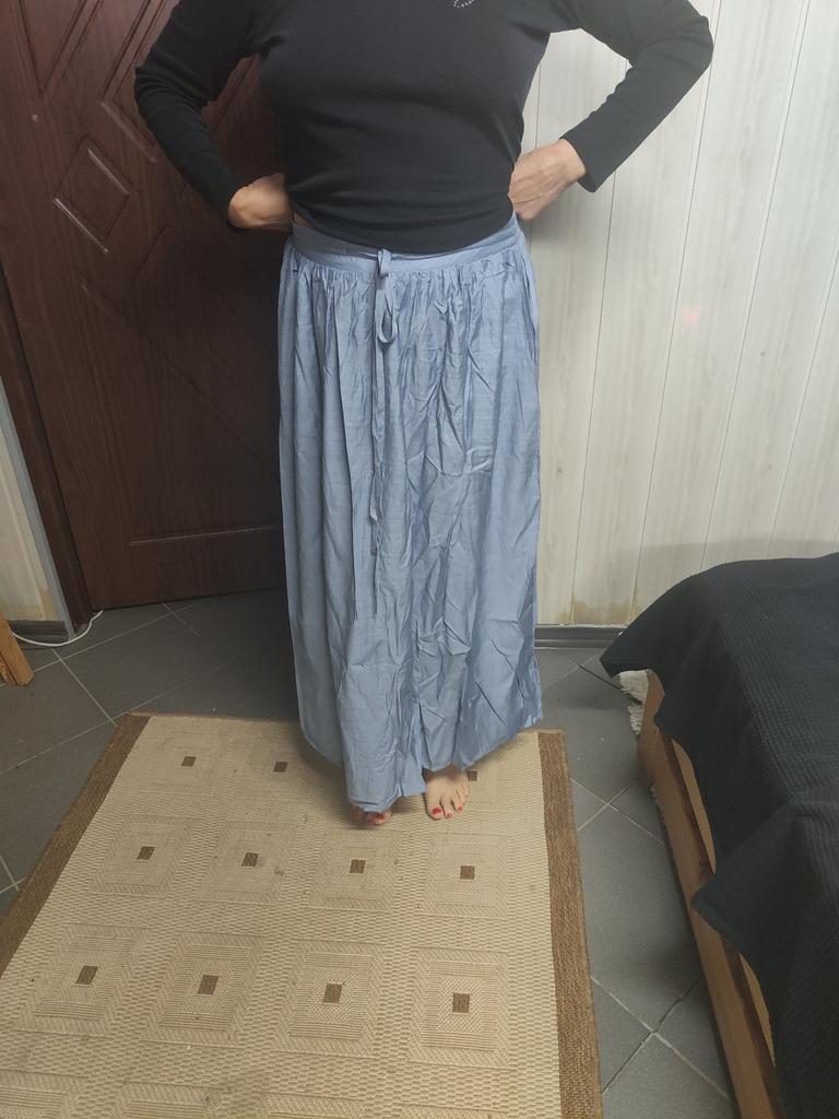 A very cute skirt for the summer. In the picture it looks like a tick, but in reality it’s straight, so just in case I took two sizes larger so that it wouldn’t be clingy. The length goes to the floor and a little more, and again always You can make it shorter. There is an elastic band at the back of the waistband, there are two internal pockets, which I will also put away. The material is pleasant, I think it will wear well. Thank you all.