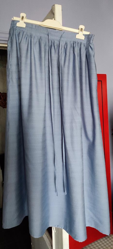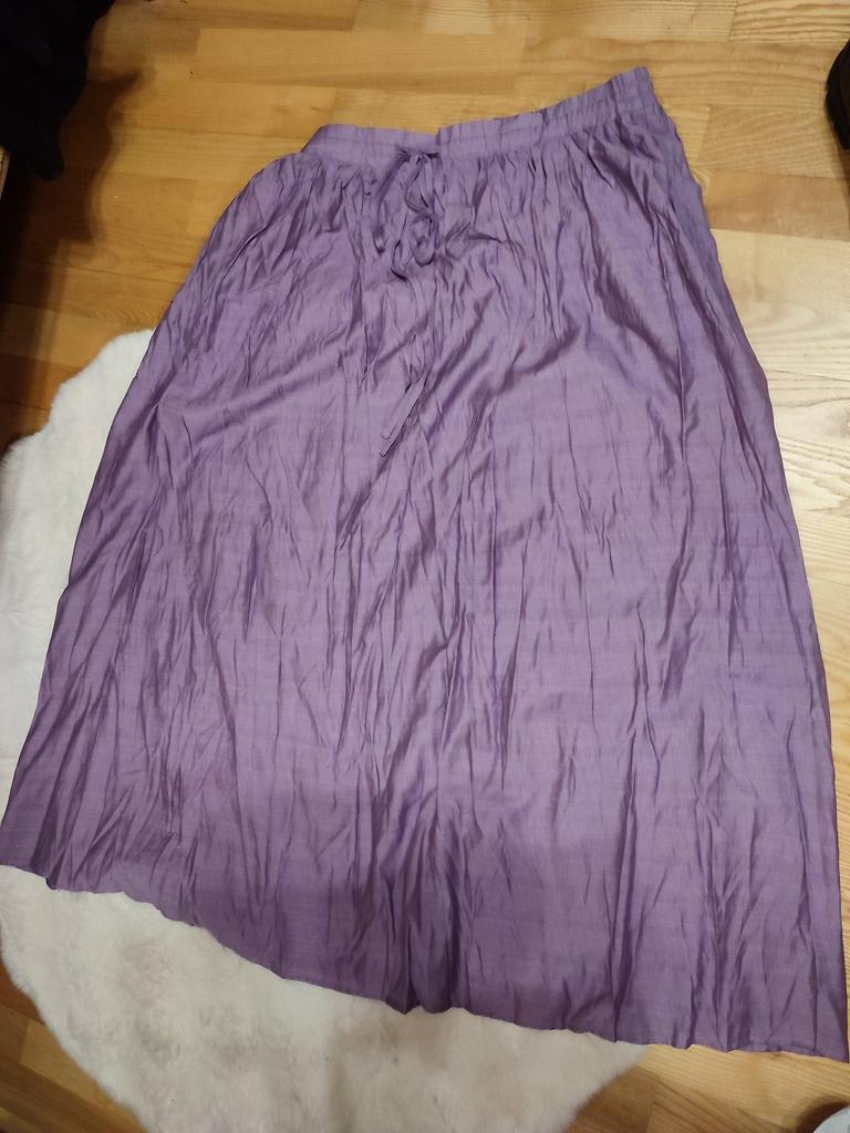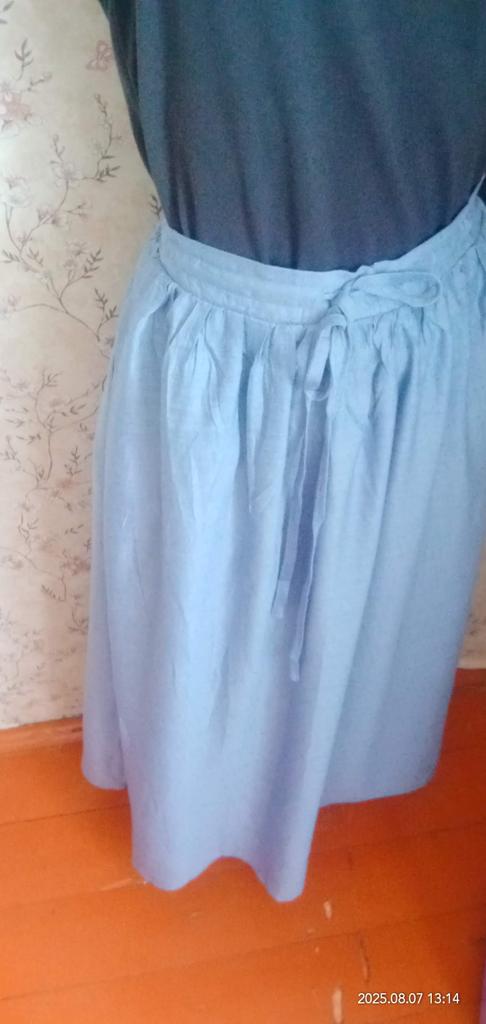 The skirt suited me, my size is 46. The quality is good: the fabric is silky, thin, but slightly see-through, there is a wide elastic band on the back of the skirt, a drawstring in the front, pockets on the sides, I recommend buying