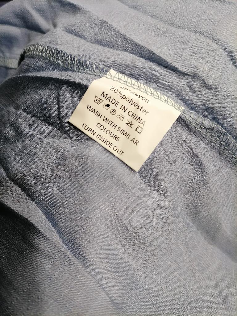 Everything is as in the picture. The color is noble, bluish-gray. Easy. For hot weather. Only the fabric is not cotton, as in the description, but viscose (80%).