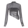 Spring Sexy Shirts Fashion Women 2023 Short Tops Y2k Streetwear Slim Tee Long Sleeve Square Neck Slim Mesh T-Shirt 26243