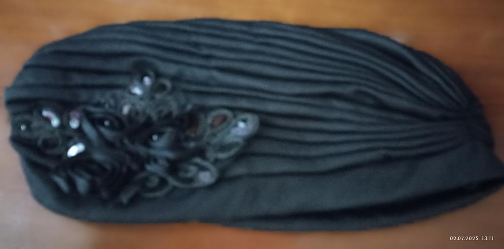 Synthetic fabric, shiny, thin, it is not clear for what weather. Nice application, but I don't know if I will wear it. The word "hat" in the description is completely superfluous, it does not correspond. A thin headdress "for beauty", maybe somewhere in the Christmas play "Nativity scene" it will be possible to use it for the costume of one of the three kings... It will have to be given to someone