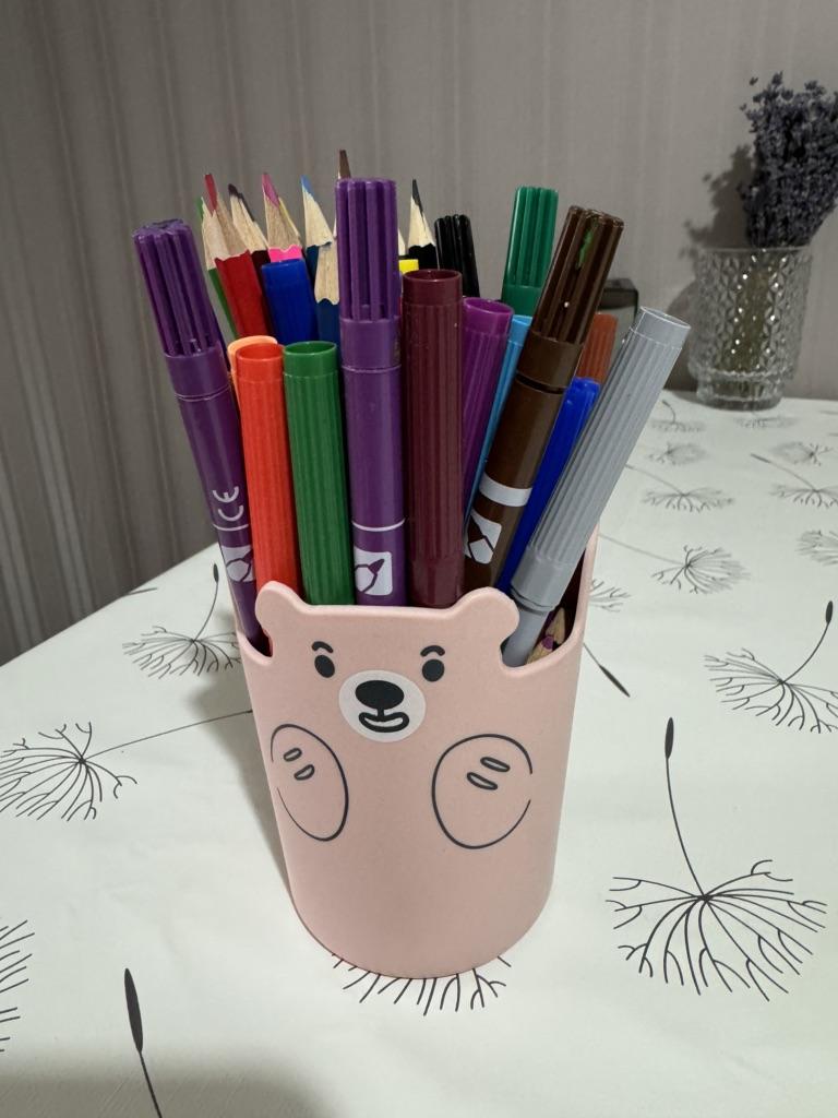 The pencil and pen holder is very cute. For one leu it's great! Thank you very much