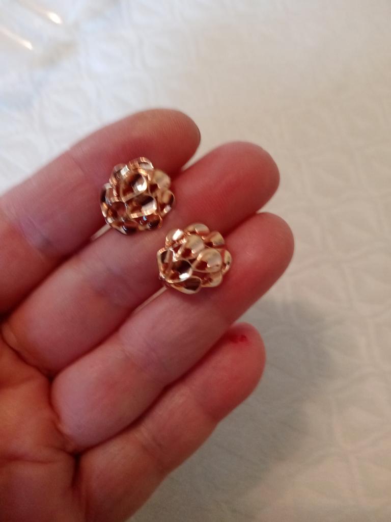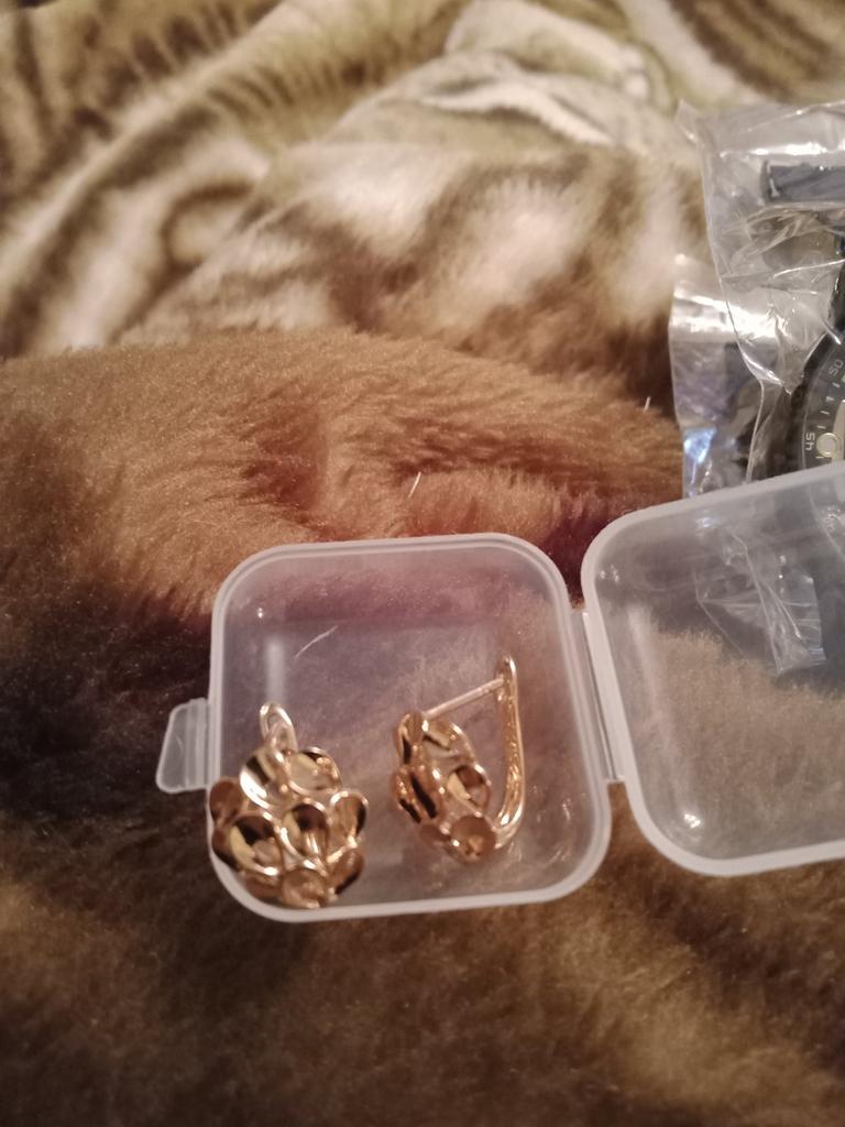 Very beautiful earrings. They correspond to the photo, they look like gold. I really liked them, they do not cause allergies.