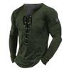 Men's Outdoor Vintage Lace-up Hooded Long-sleeved T-shirt Autumn Plain Casual Top