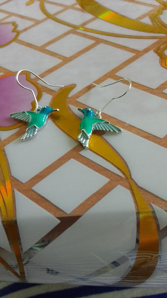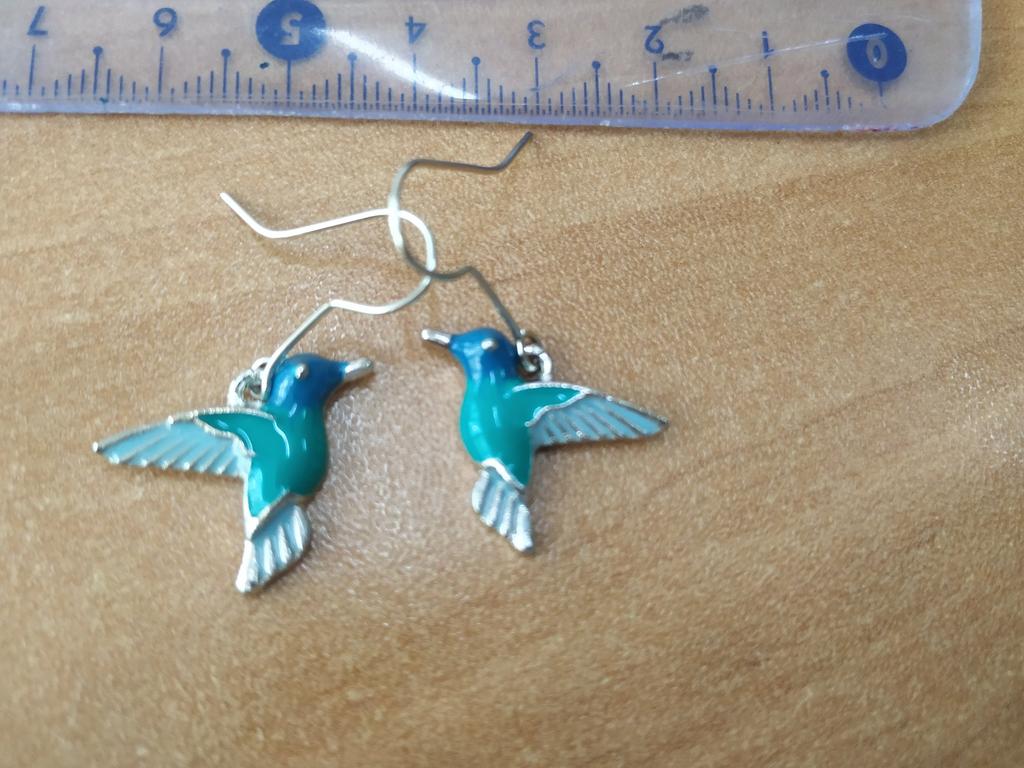 Won for $0.1. Nice little ones. Pendants are symmetrical, birds look in different directions. Enamel is fine. It matches perfectly in color to a chain with a pendant from the same hummingbird, only larger. Thank you!
