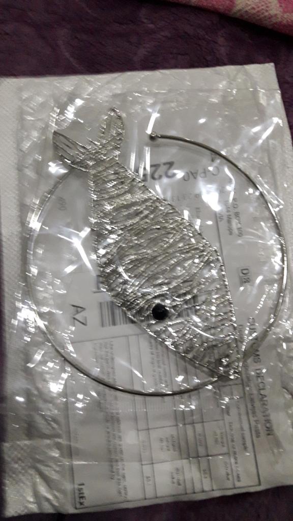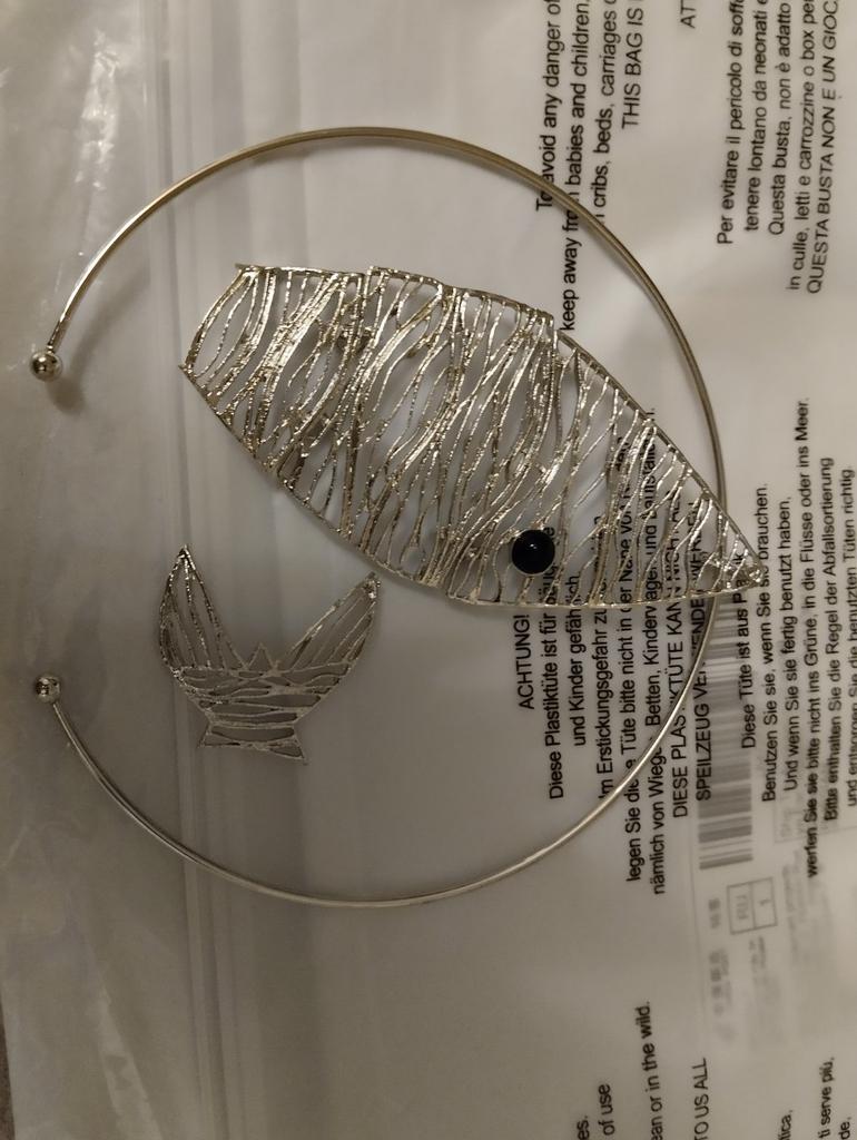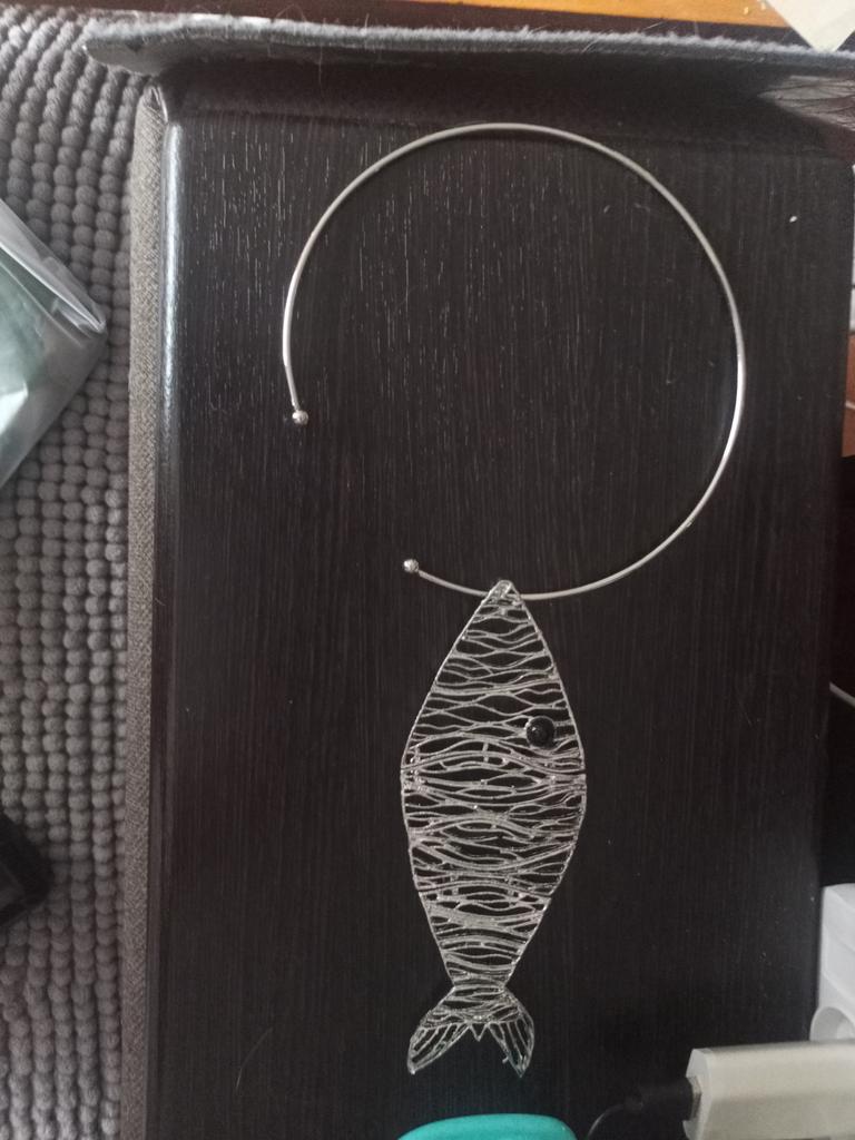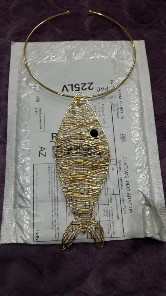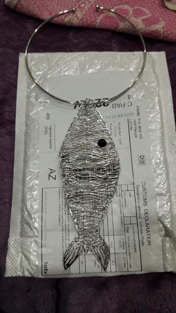 The fish is bent, apparently the tail broke off on the way. It's a pity, it's impossible to wear.