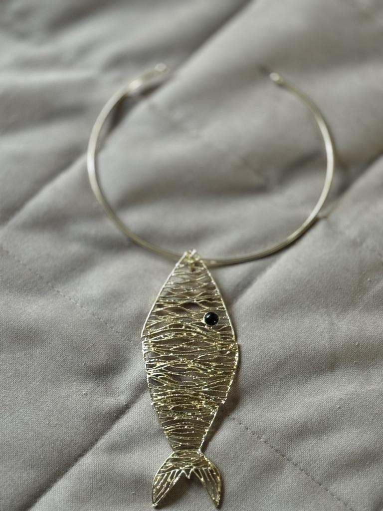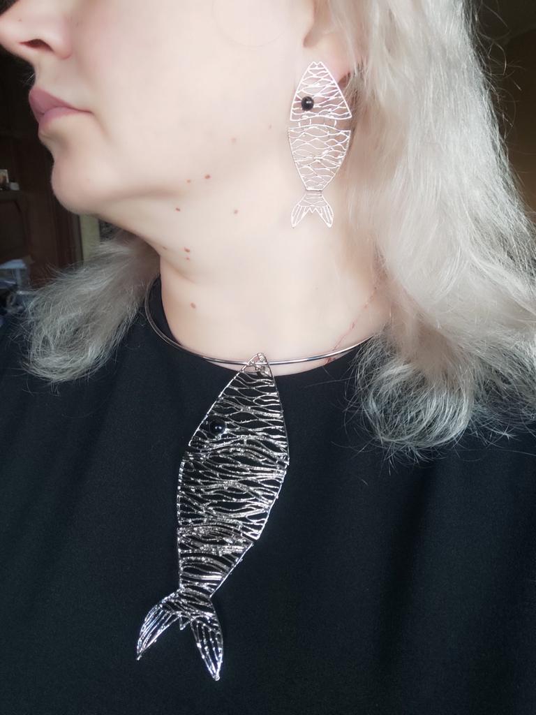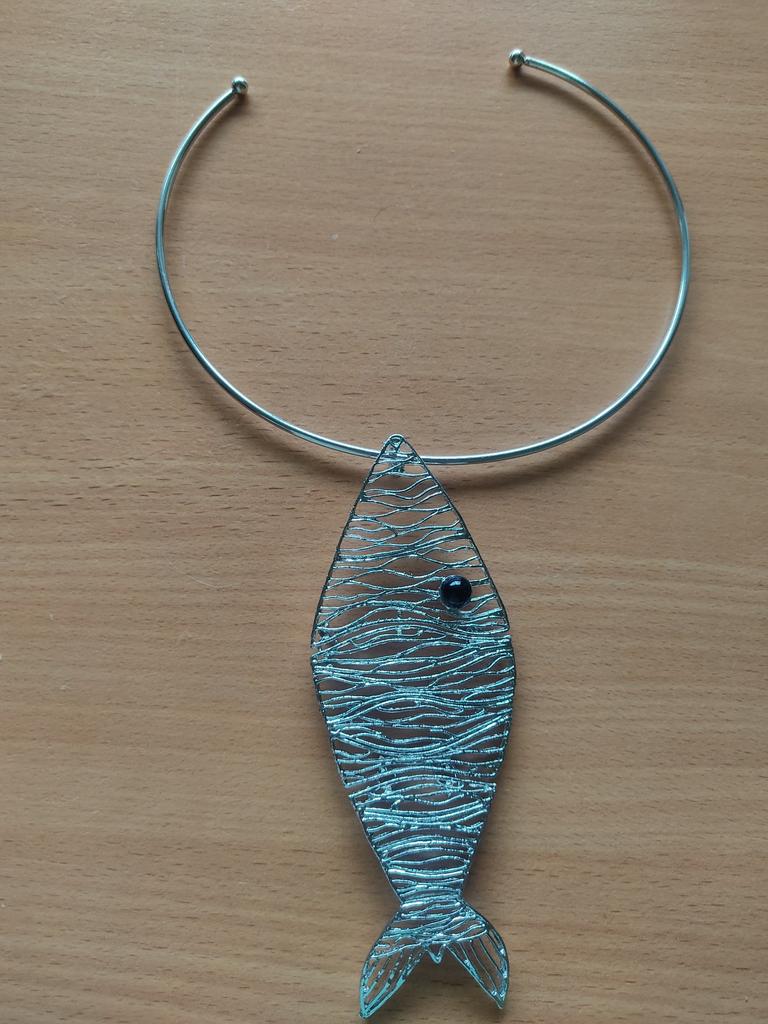 Cool necklace with a fish. Previously I took it for gold, now for silver.