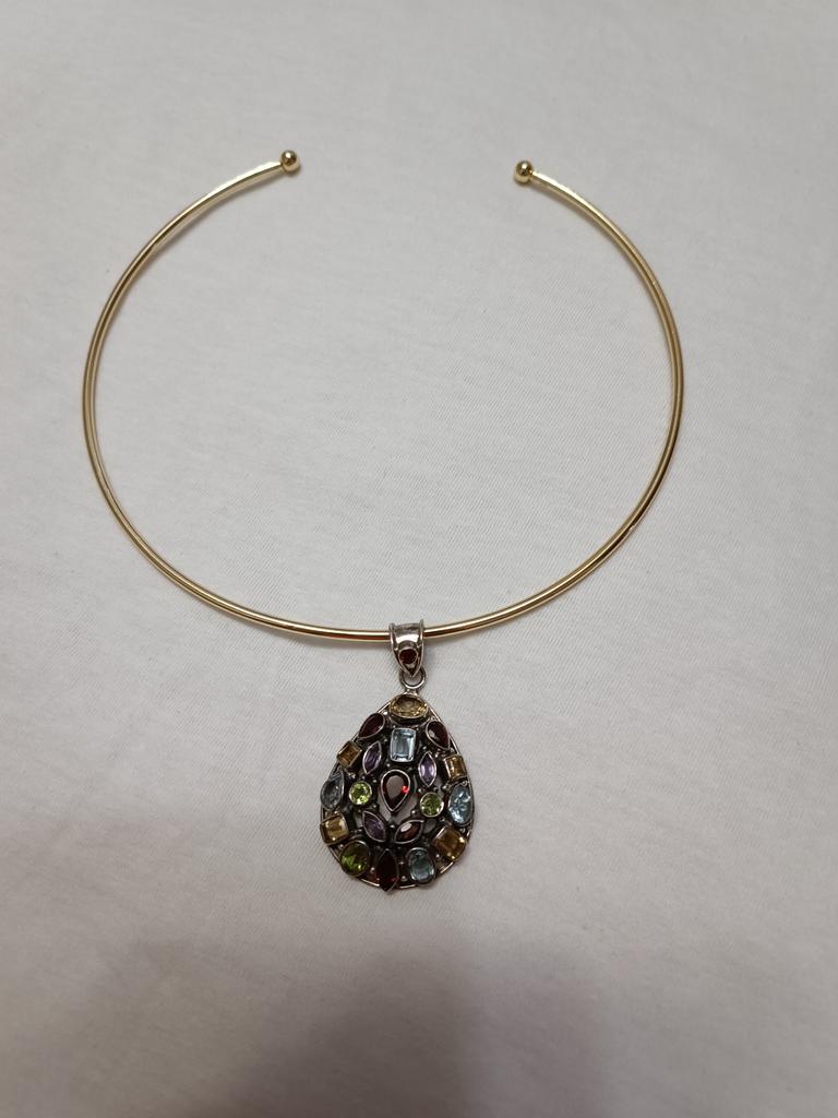 Wonderful necklace with pendant. I also like that you can put other pendants on the hoop.