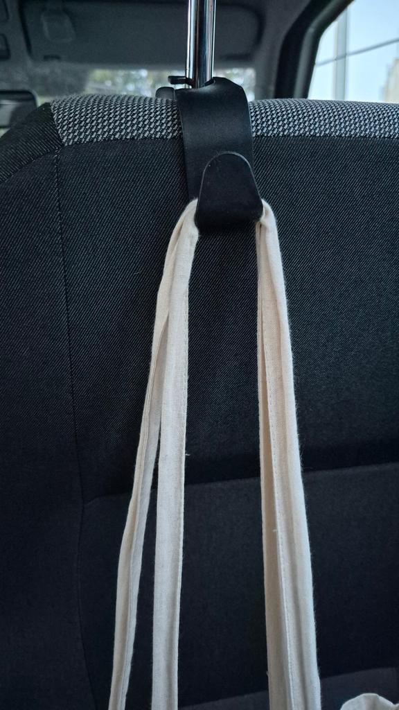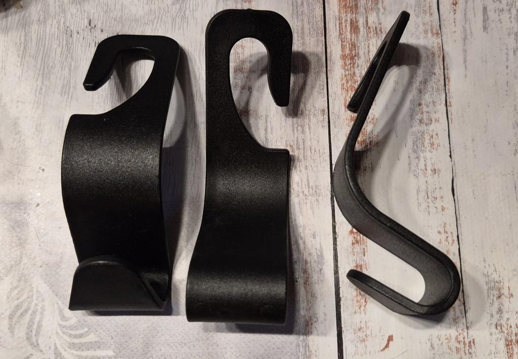 Convenient hooks. Strong enough. Good takeaway from the headrest strut. Rights I have thick seatbacks and takeaway is barely enough.