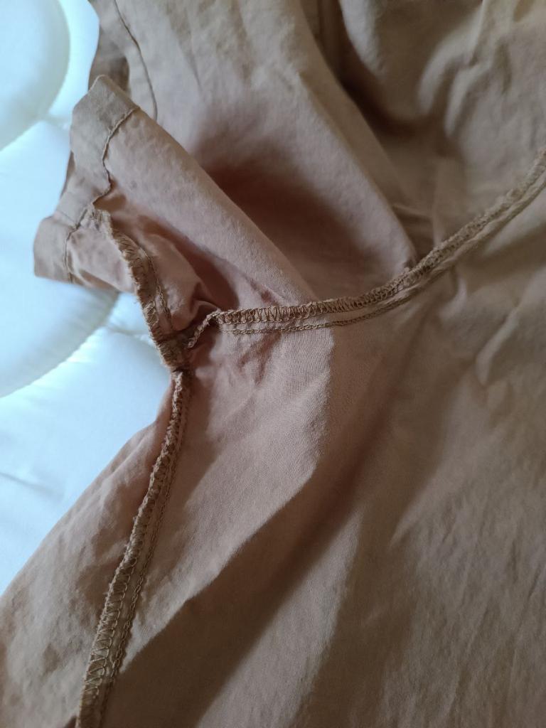 The fabric didn't live up to expectations. I thought it would be like linen, but it's thin and transparent ((((. Maybe it's perfect for the heat, didn't get a chance to test it, the heat ended while the purchase was on its way... 🤭