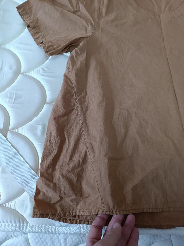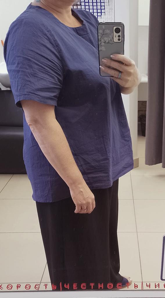 Nice thin breathable blouse. The size fit. Loose-fitting with an elongated back. For those with a large bust, the sleeve can be slightly rolled up. One drawback - it wrinkles very easily. But you can just crumple it up a lot right away and not iron it)))