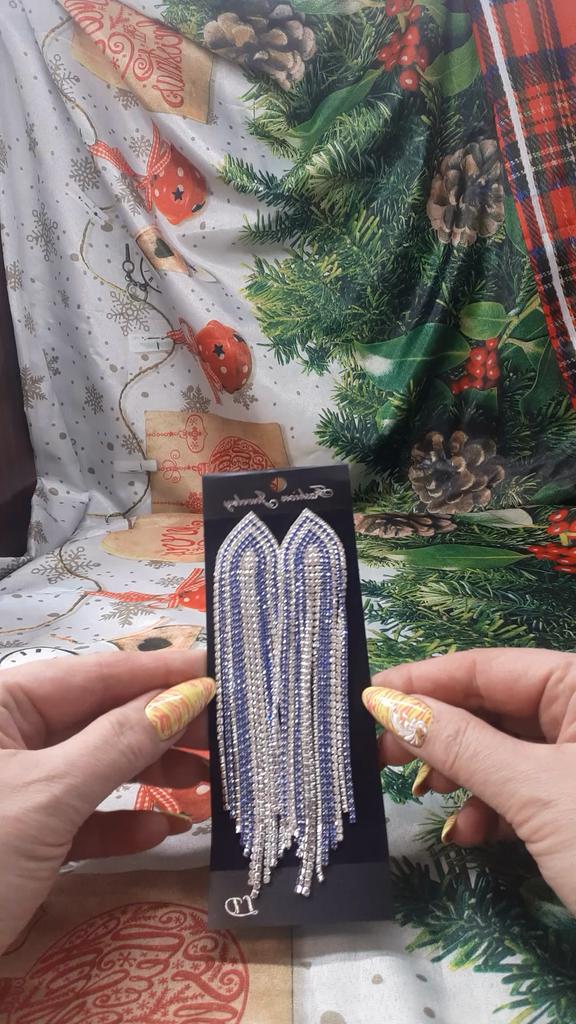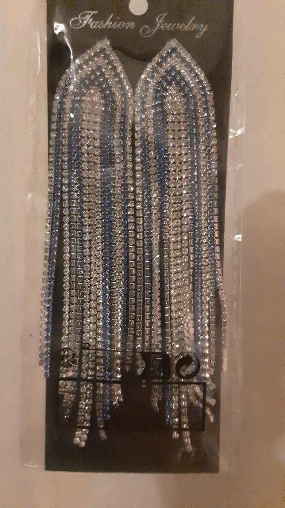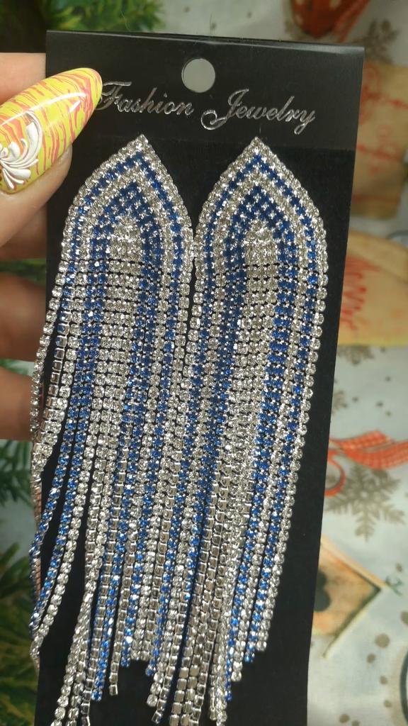 Fashion Blue Silver Color Shiny Zircon Drop Earrings Long Tassel Earrings For Women Statement Jewelry Gift LXY