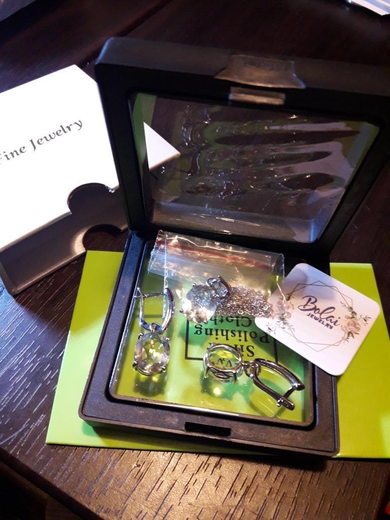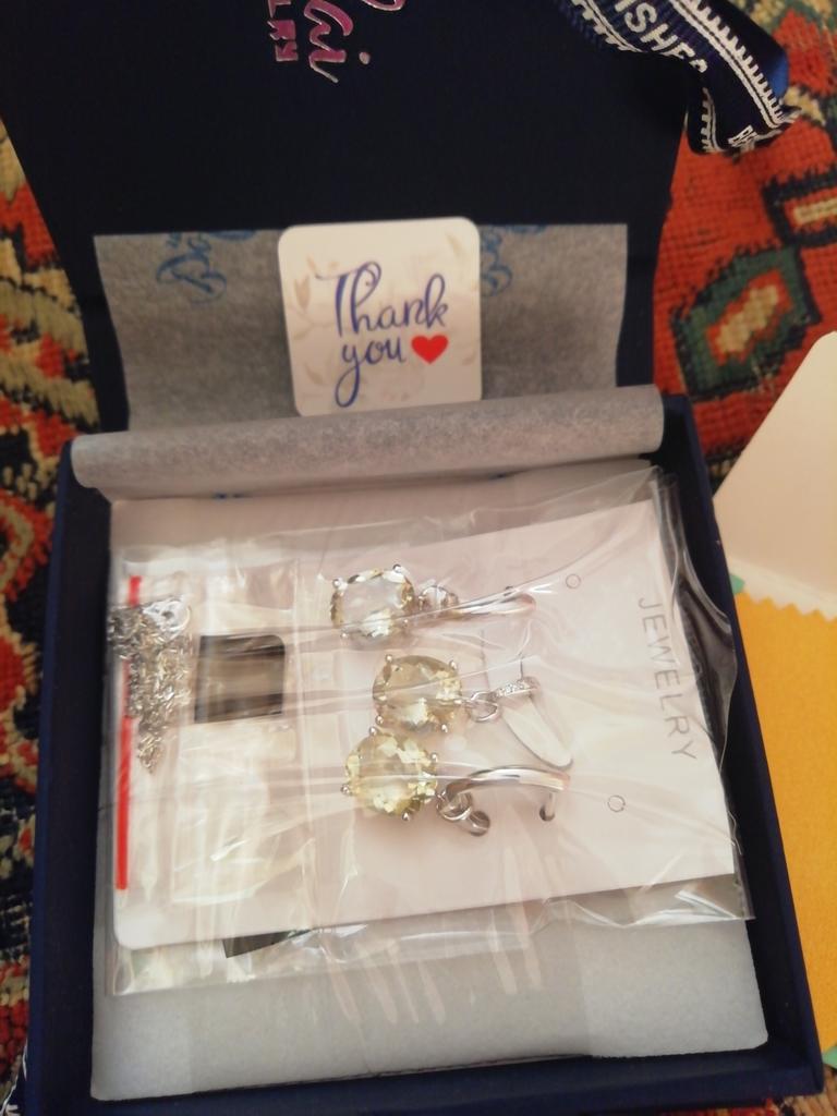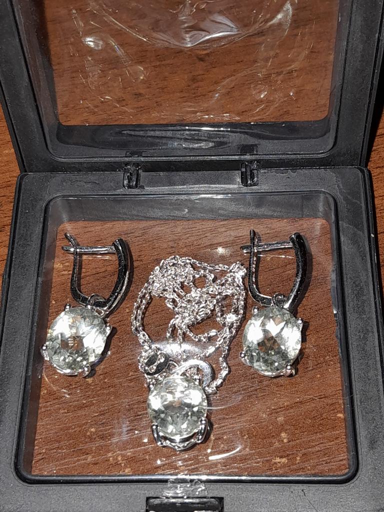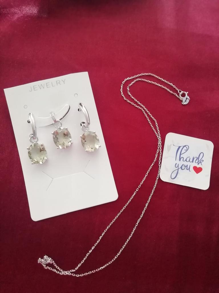 A beautiful and elegant set, very well finished. Luxury packaging. It would have been nice if the locket stone was a little bigger than the stones on the earrings.