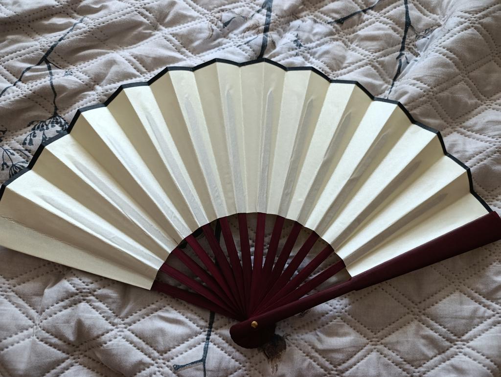 Very large and beautiful fan. It won't fit in a small handbag, it will stick out or have to be carried in your hands. The only thing I didn't like was the quality of the wood. I got a splinter(