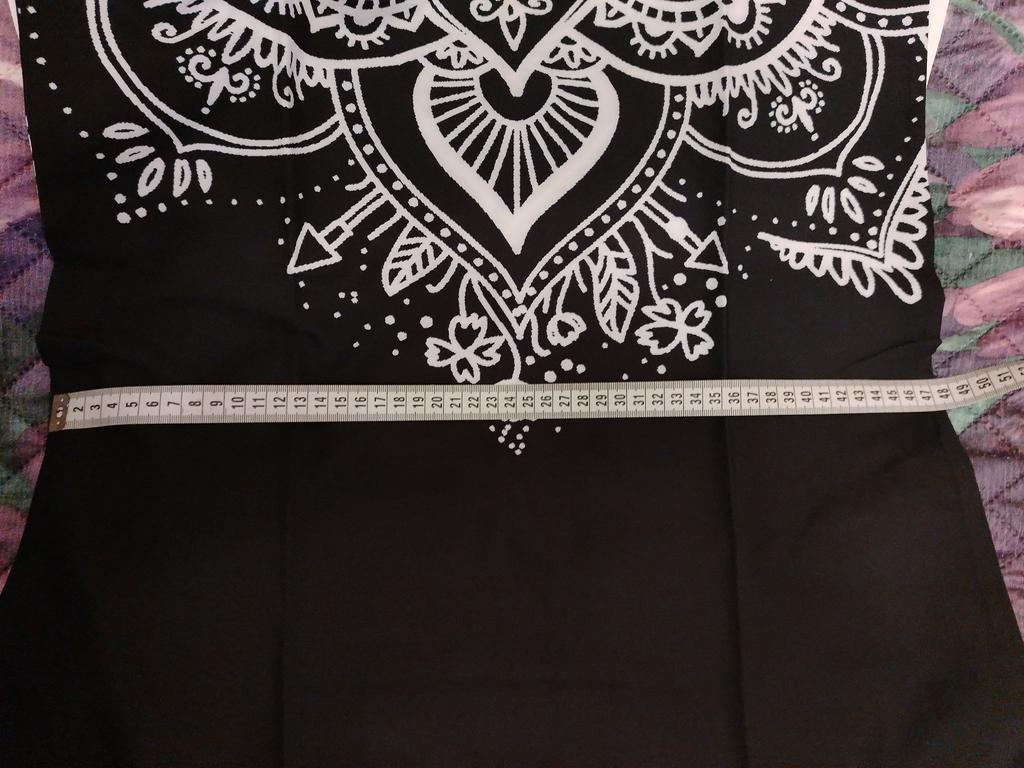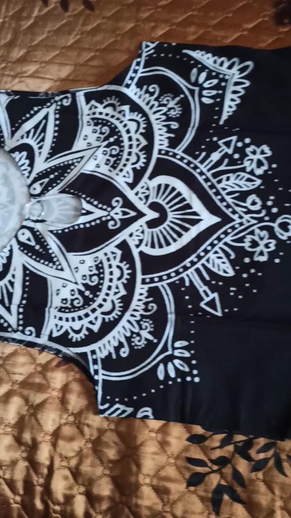 The print is applied directly onto the fabric, like batik, very long to the floor, hemmed with black thread over white, and the armholes.... disappointed, won't wear it
