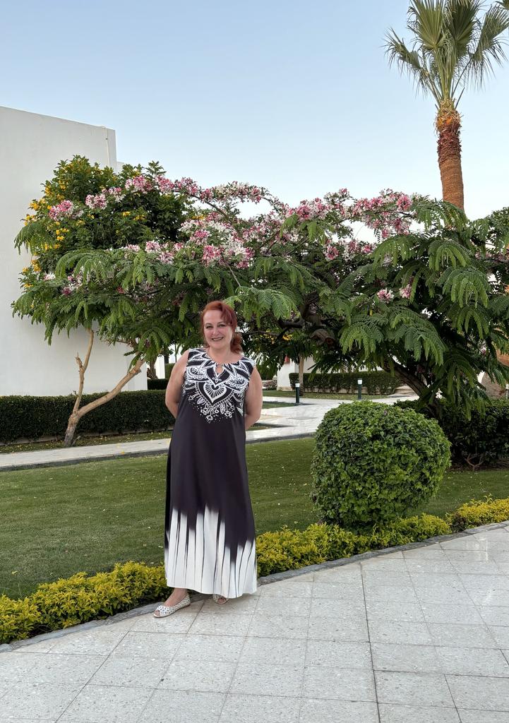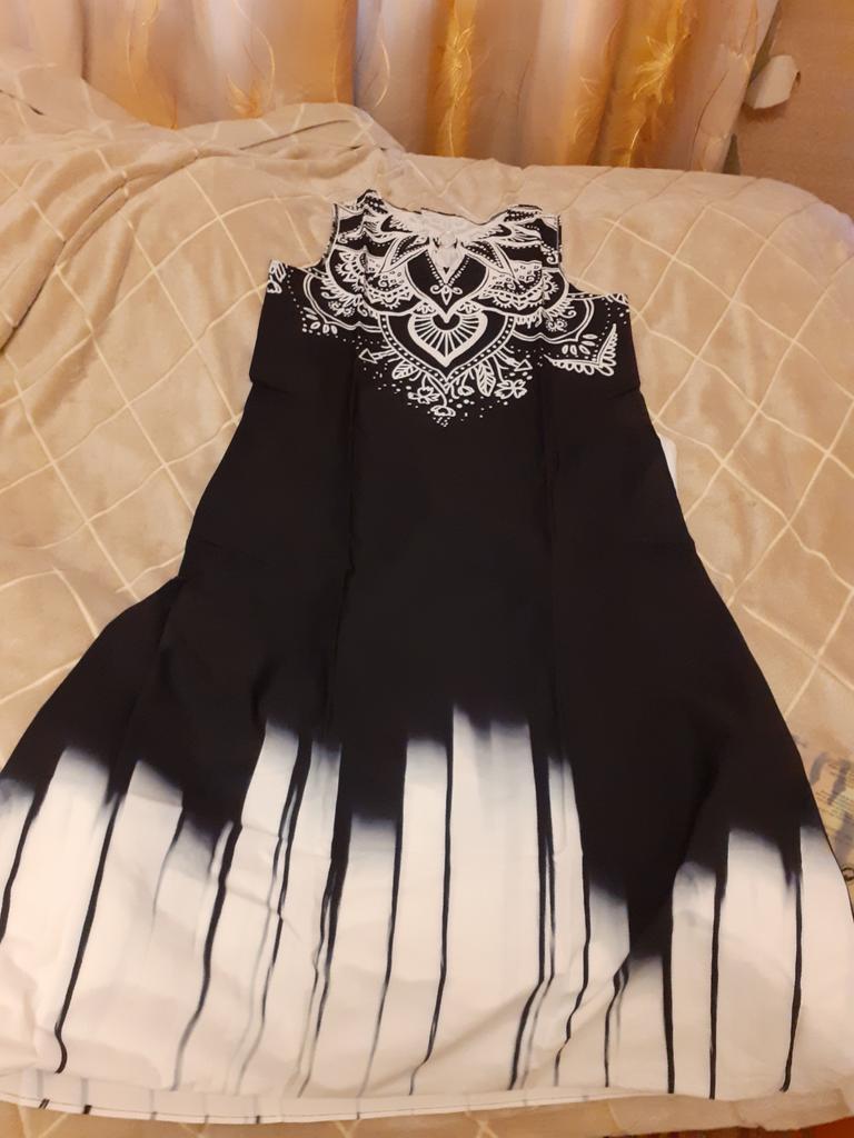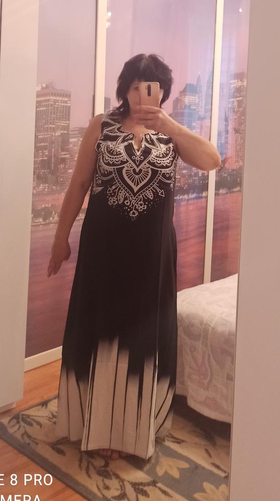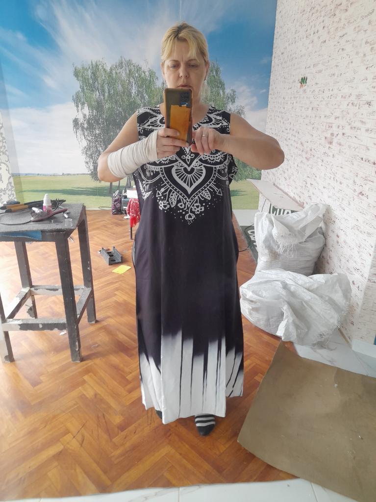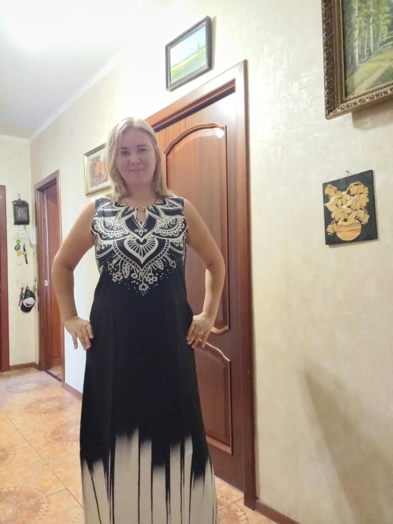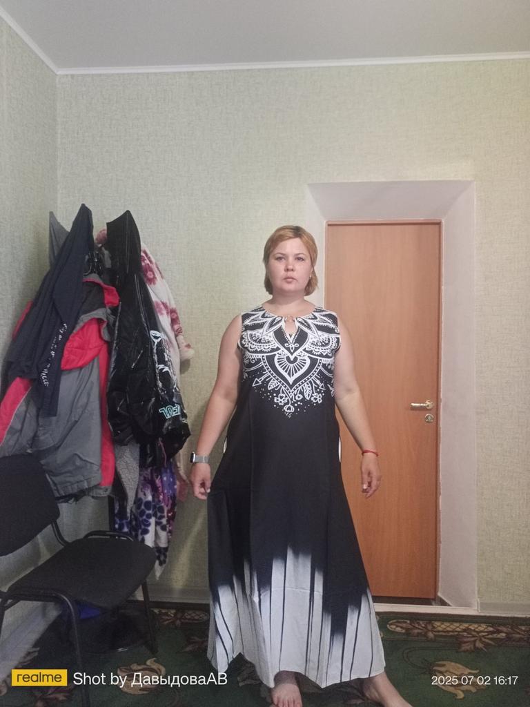 The dress is super. The quality of the tailoring is great. The seams are neat, the threads do not stick out. The fabric is thick, does not shine through. Thank you for the gift.