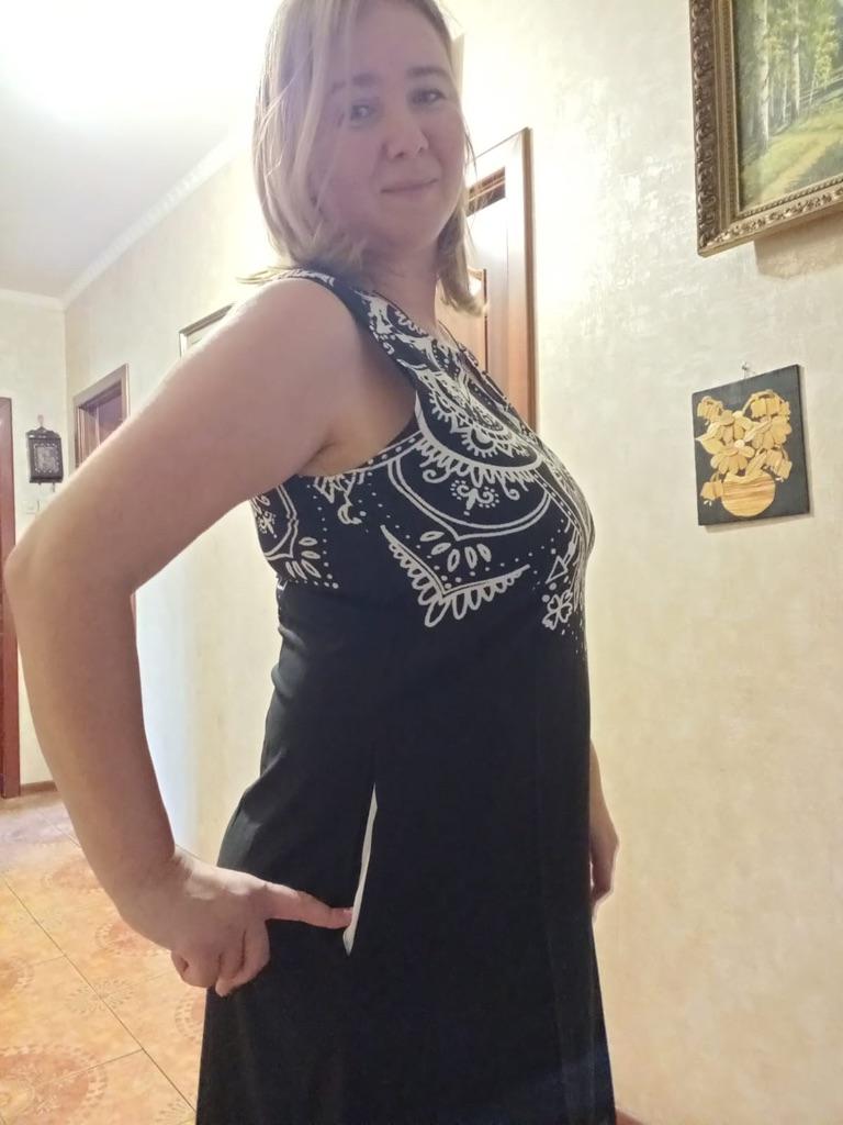 Completely wrong cut, how can you sew size 56 without darts, as a result the top was slightly put on 46, but the bottom on 56
