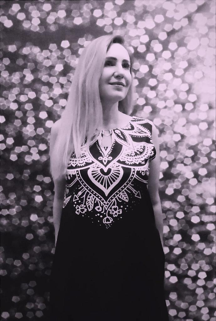 I don’t even understand the color of the dress, it’s like in a shroud, not black, not blue, some kind of peeling gray. It’s just awful.