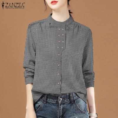 ZANZEA Womens Long Sleeve Stand Collar Retro Cotton Blouse