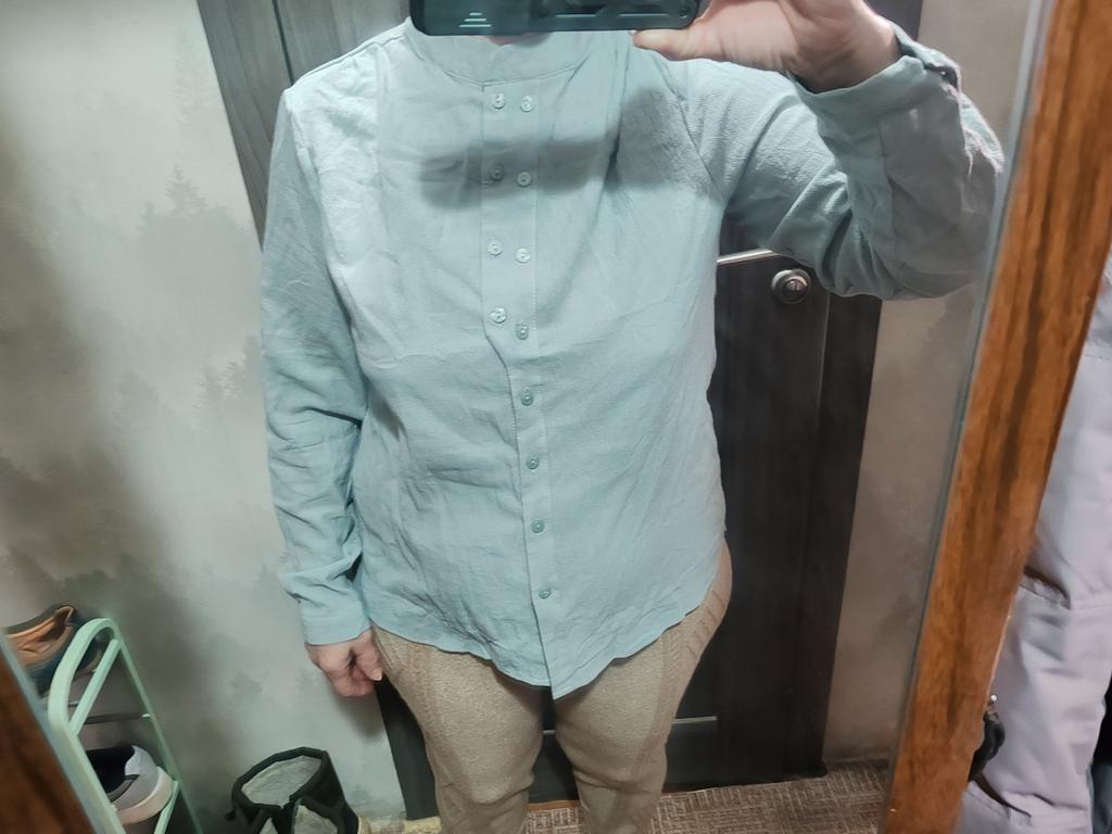 Good quality shirt, cotton, dirty blue color. For my size 48-50 I ordered XXL and was mistaken. The shirt is very big, I should have taken L.
