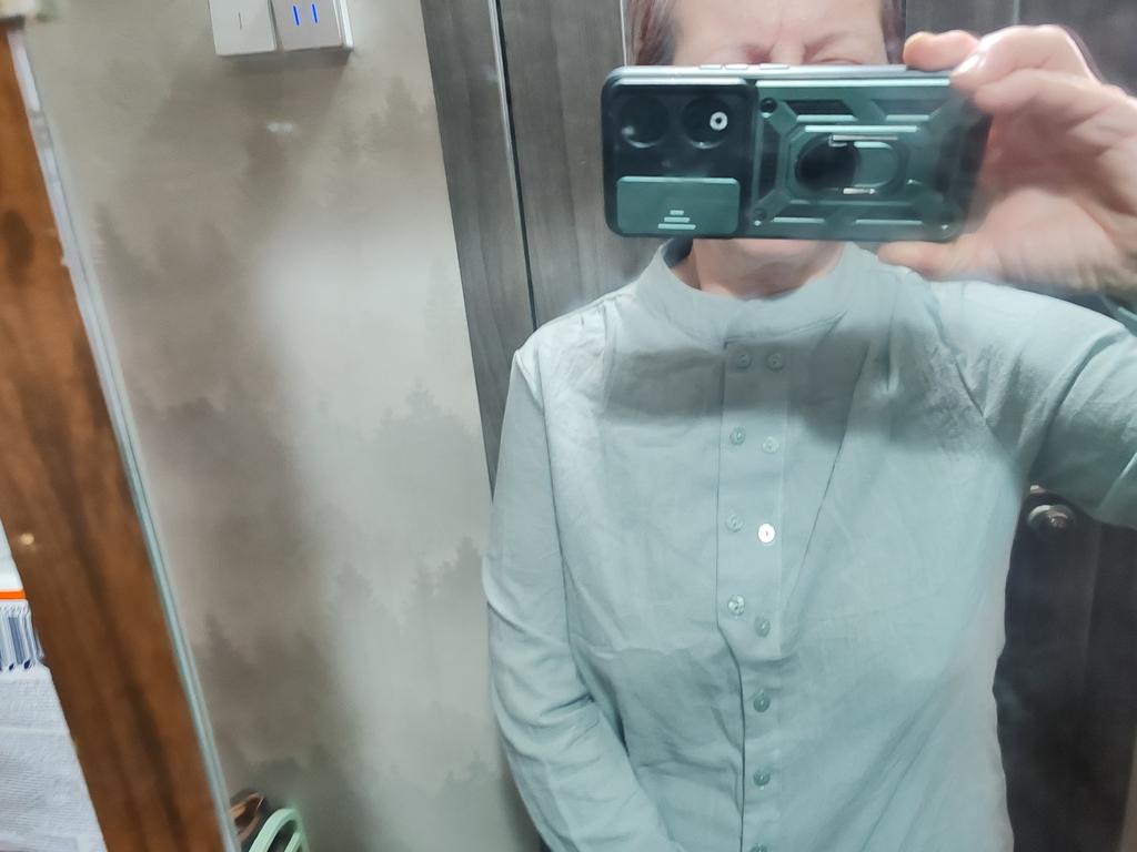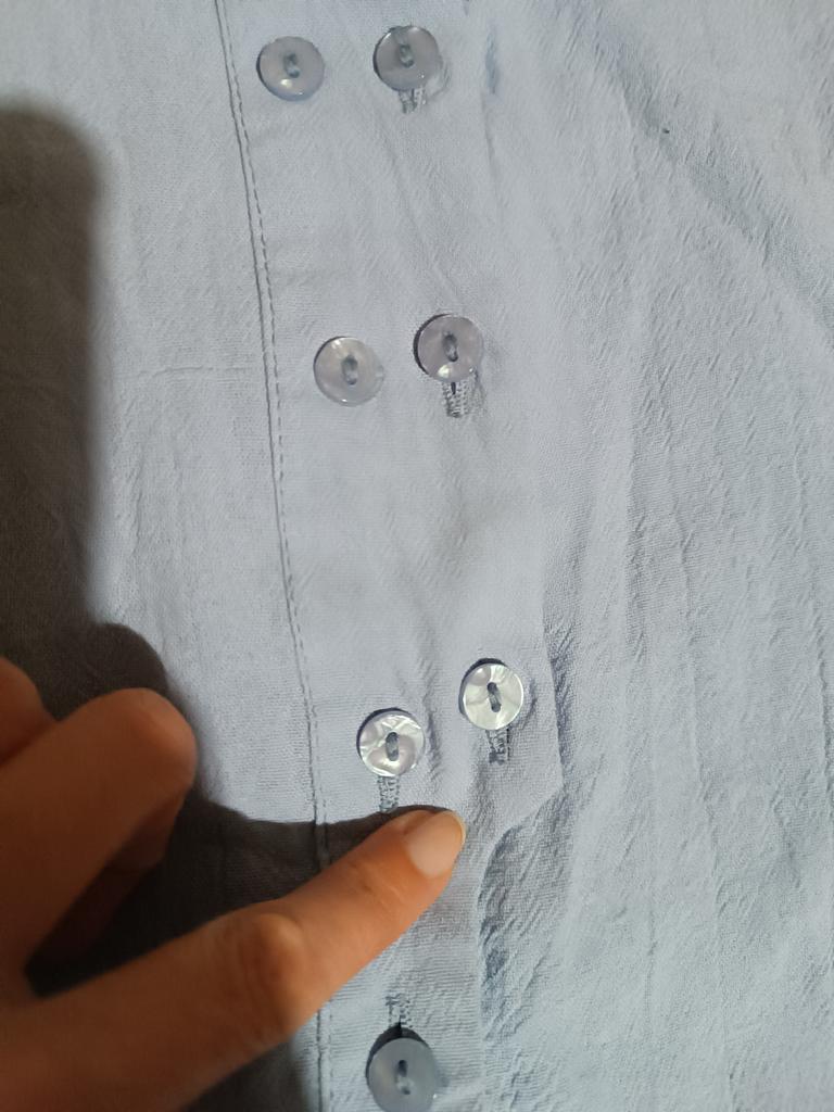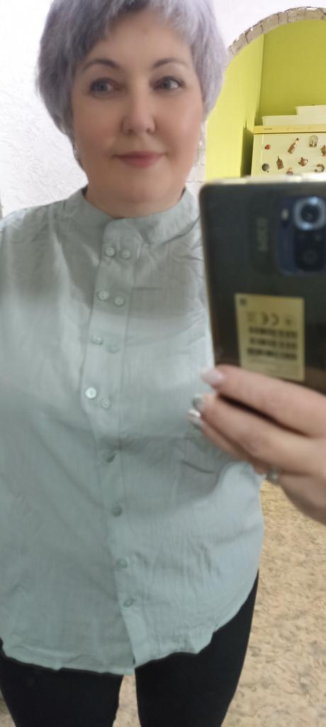 Nice blouse, true to size, took the maximum size because... The chest is large, not puffy, not tight, not tight.. The color is mint, pleasant.. The buttons are all in place, the top is fastened interestingly, but not as in the photo, but slightly obliquely, not very long in the front, longer in the back, the sleeve is perfect for me 177, I recommend!!))