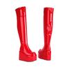 Krazing Pot PU Leather Spring Winter Keep Warm Shoes Super High Heels Waterproof Wedges Stretch Boots Zipper Women Over-the-knee Boots