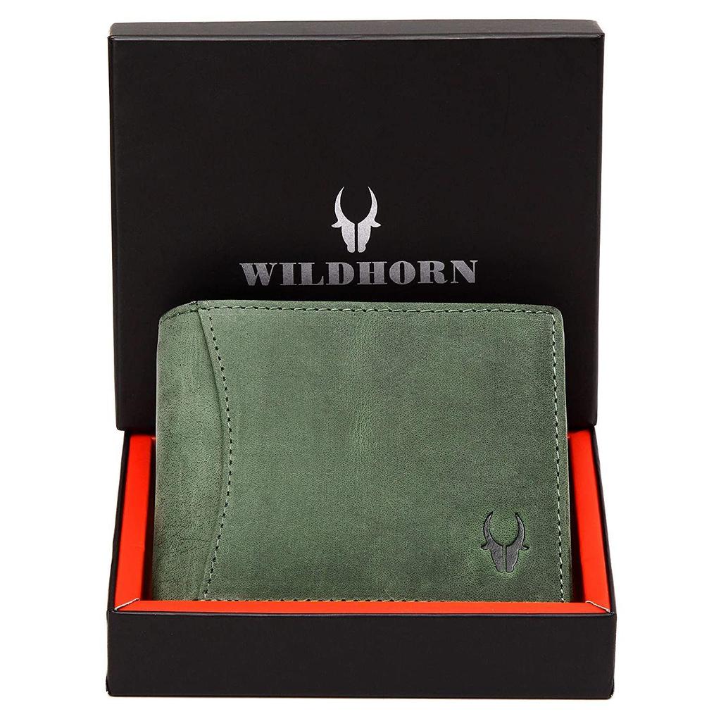 WildHorn Green Leather Wallet for Men I 9 Card Slots I 2 Currency & Secret Compartments I 1 Zippe.