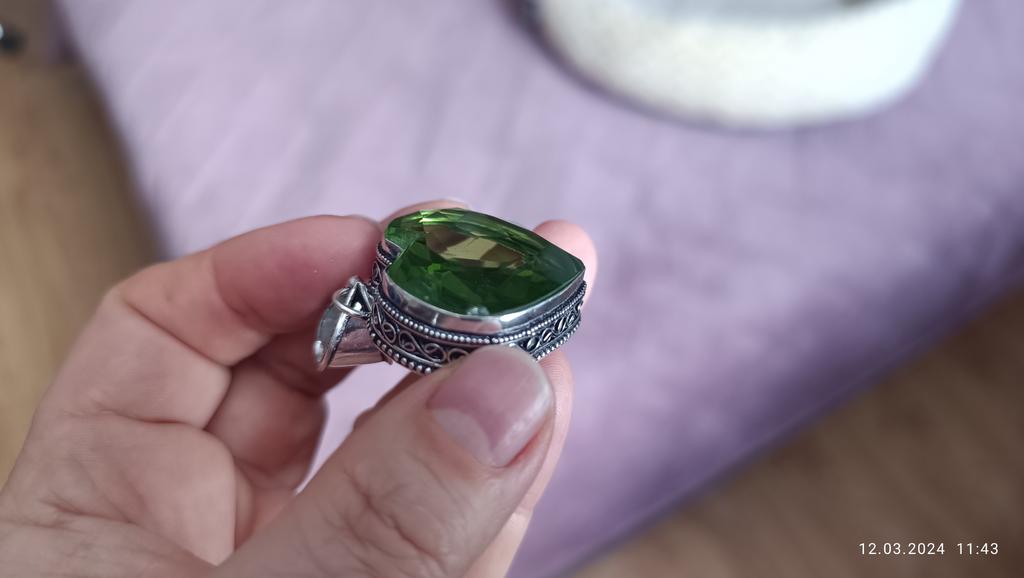 Almost like in the picture, only even better: the stone is bright, transparent, shiny, very beautiful! The frame is elegantly carved. Only the reverse side is crooked, not very smooth, but polished. Well, a very beautiful pendant!