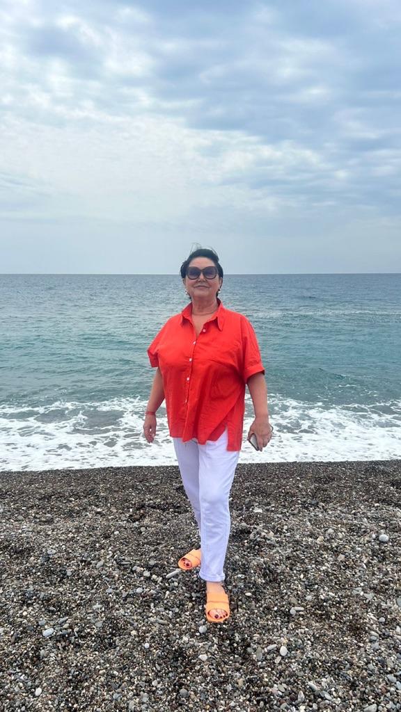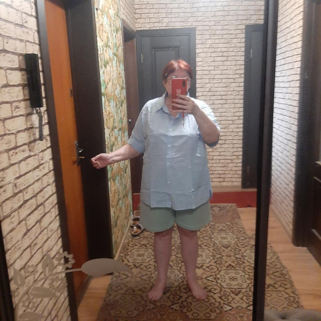 I really liked the shirt! On her 50th birthday, she took an XL - free. It was also possible to order L. The color is as in the picture, the quality is good. I will order again in another color. Thank you very much!!!