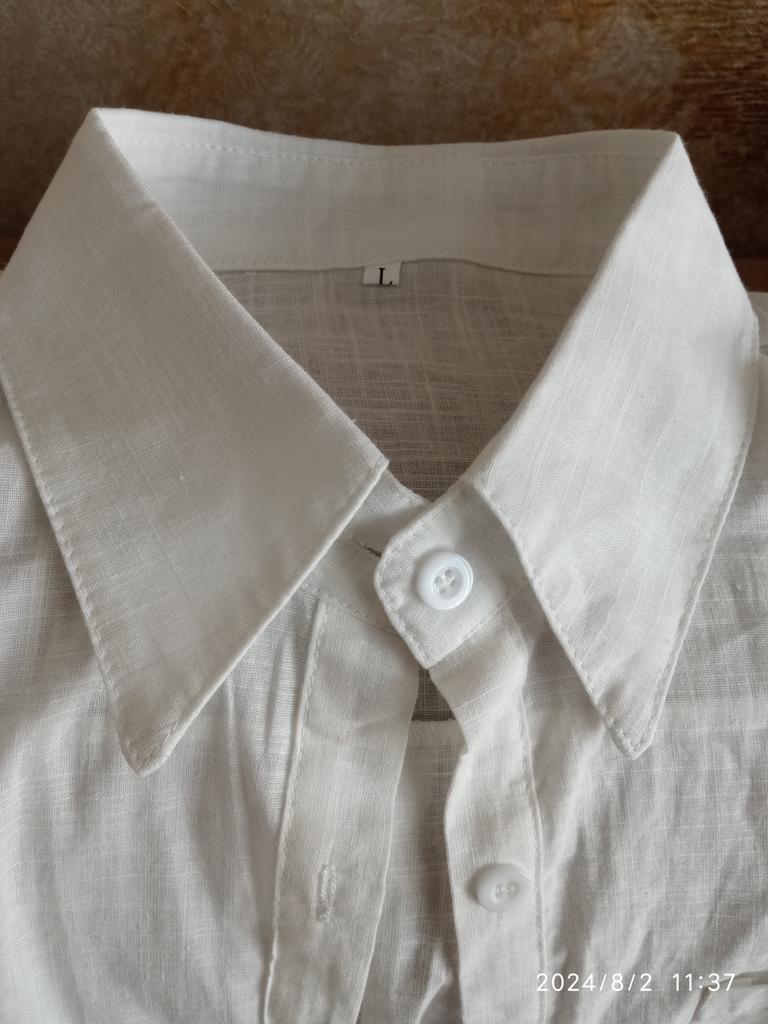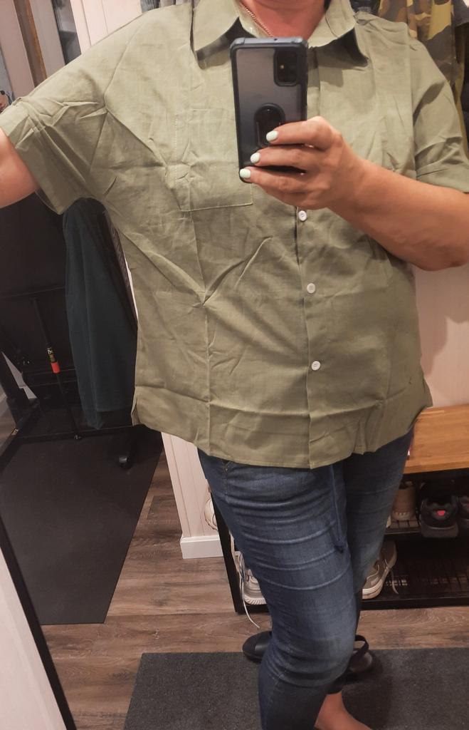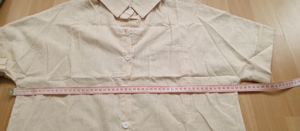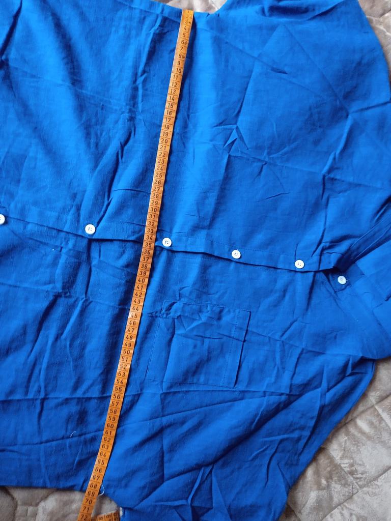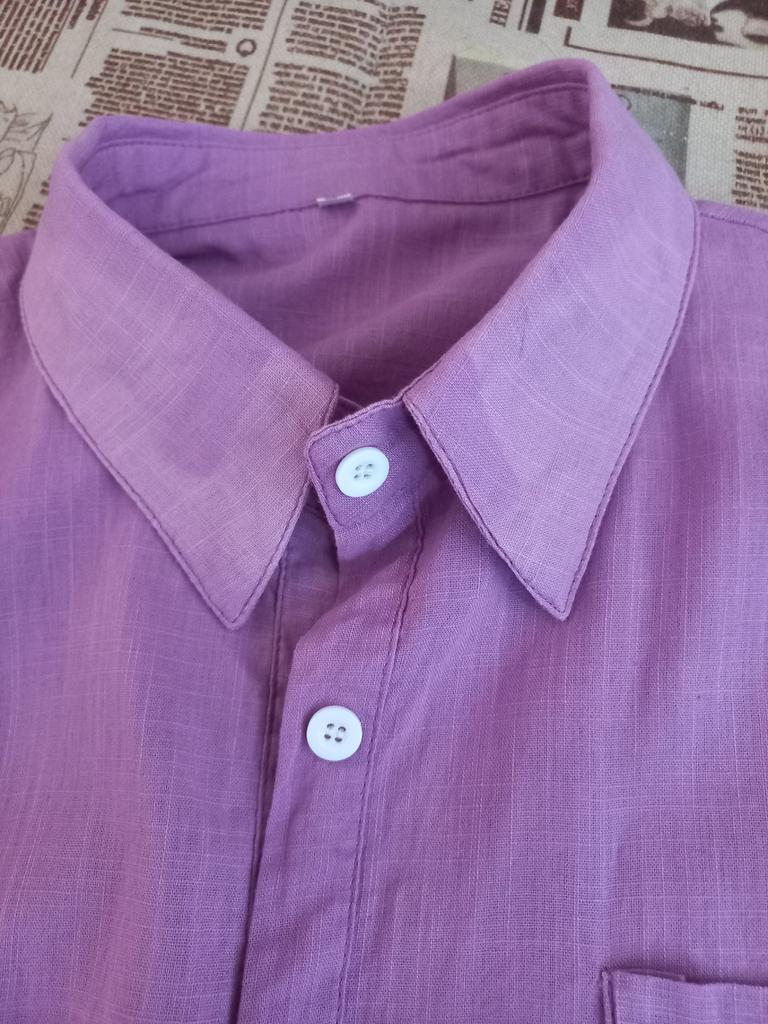 The shirt is wonderful. The only drawback is that the khaki shirt has white buttons sewn on it. I replaced it with coconut ones. 3xl fits 50-52, bust size 102. Loose fit. Moderately free. I washed it on the general cycle, temperature 30 degrees. The fabric became softer and did not shrink.