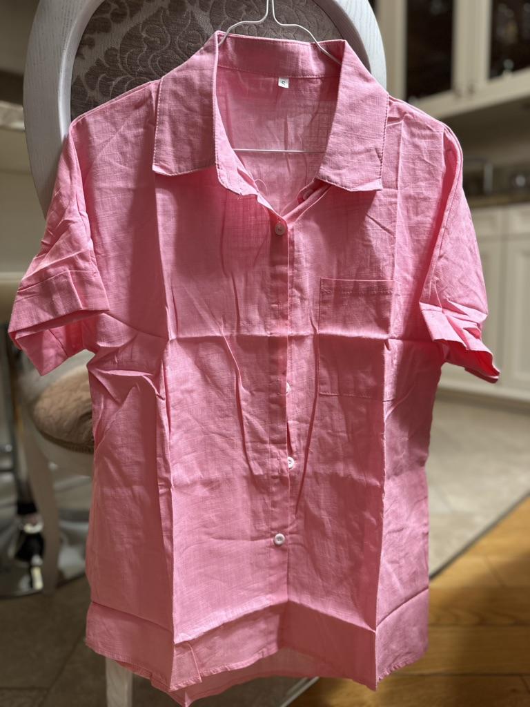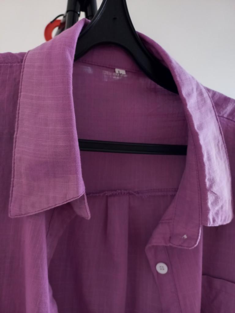 Small size and a completely different color, bright yellow. Sewn neatly, cotton fabric, good blouse