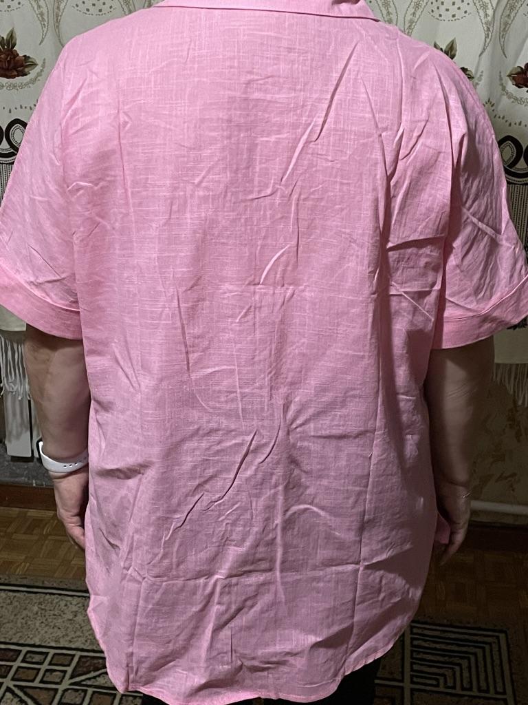 Good quality blouse. Everything corresponds to the description. Cotton, nice color. I took size 50 xxL., everything fit. I recommend.