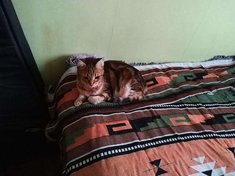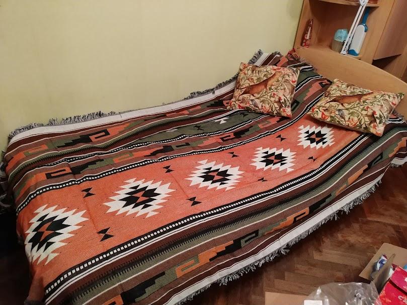 The color is much paler, not orange, but salmon. The bedspread is double-sided, and the other side is blue-purple, which was a complete surprise for me. The white stripes along the edges make the picture look a bit cheap. But overall - acceptable.