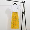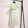 Women Summer Vintage Two Pieces Set Slim Short Sleeve T-Shirt Fruit Printed Skirt Suit High Waist Long Pleated Skirt Casual Suit