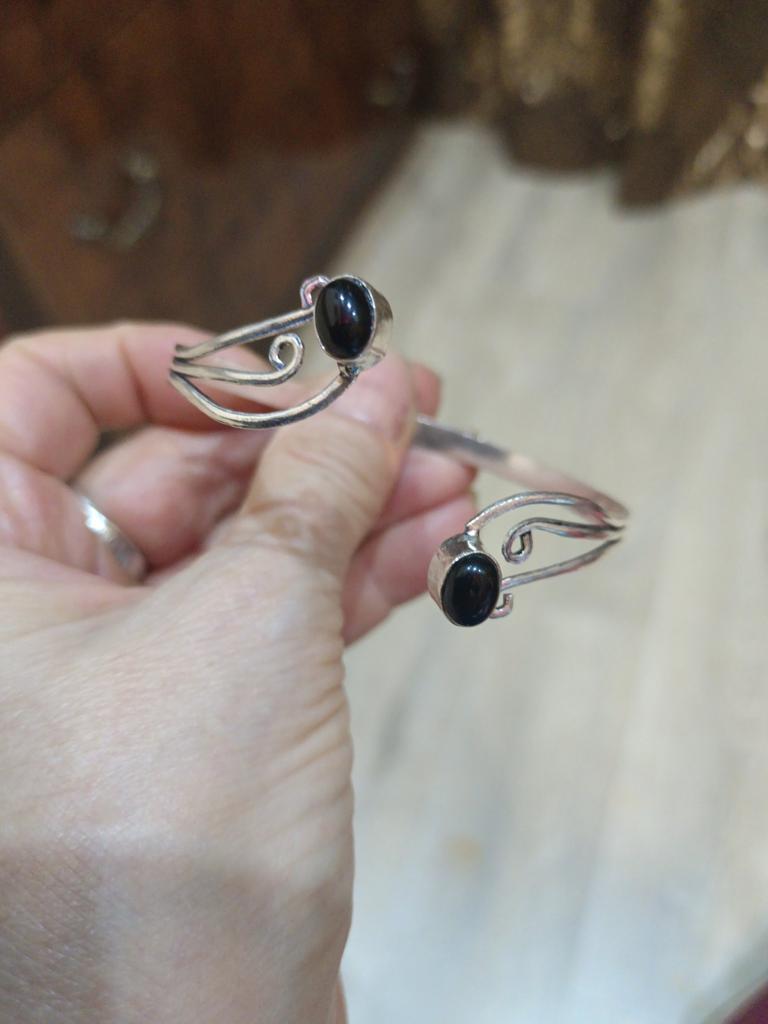 Black Onyx Gemstone Handmade Sterling 925 Silver Jewelry Bangle Adjustable For Her