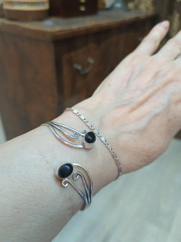 Wonderful silver bracelet with real stones. Size is adjustable. High-quality workmanship. Looks very delicate on the wrist.