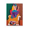Solid Wood Frame Cartoon Cute Cat Lady with Dog Poster And Prints Animal Canvas Painting Abstract Wall Picture For Living Room Bedroom Home Decor