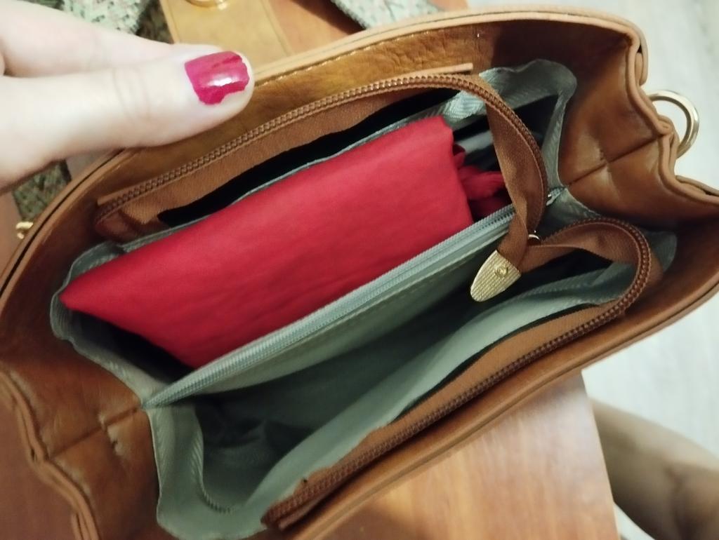 The handbag is cool. Small, but a wallet, phone and documents will fit. The strap is just a little short and cannot be worn diagonally over the shoulder. Soft. I recommend it for purchase. Thanks for the gift.