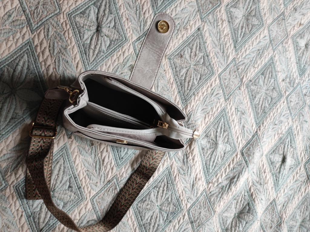 The bag is nice, but a bit small, the strap is beautiful, but for me, at 165 cm, if I put it over my shoulder, it is too short. I will have to attach another one, although it is a pity to change the original for a regular black one. Because of the short strap, I took off one star.