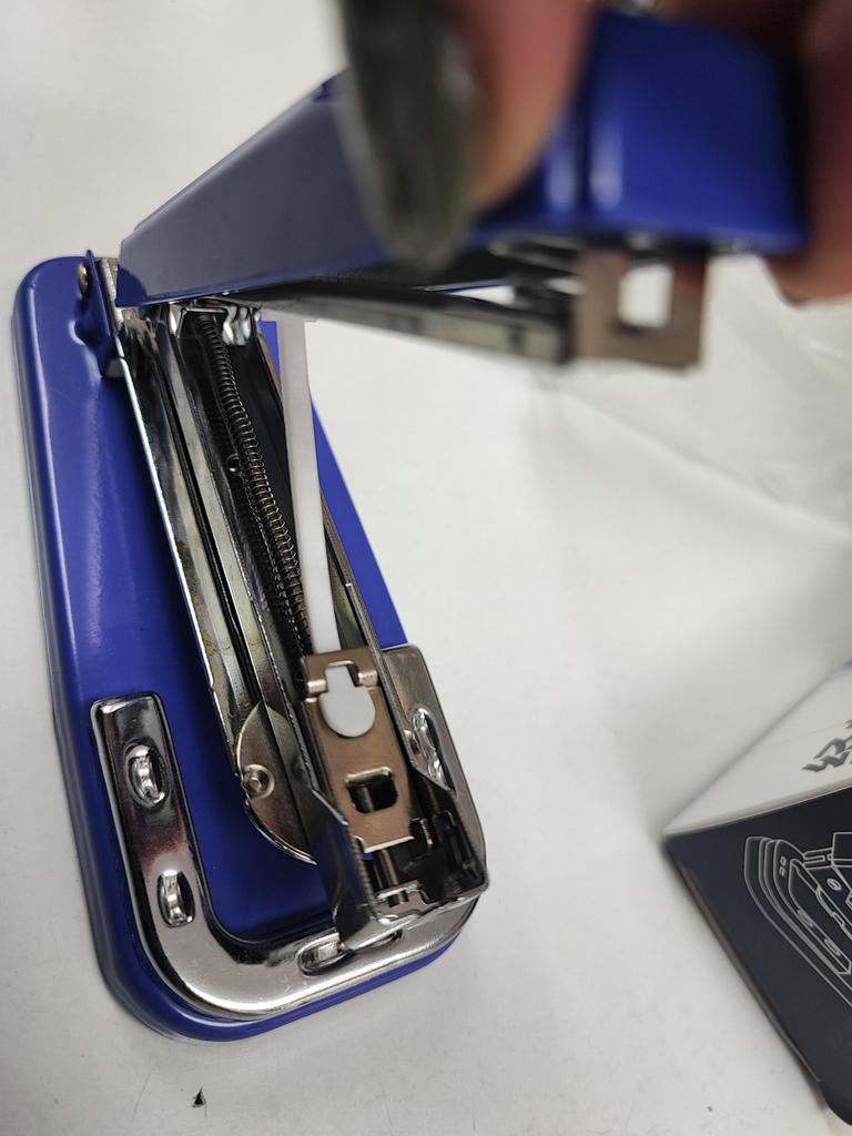 The stapler itself is heavy, metal, without staples. But what's the trick, when I opened it I found a trick, just a rubber closer (white), but how soon and when will it get damaged, WHAT TO DO?